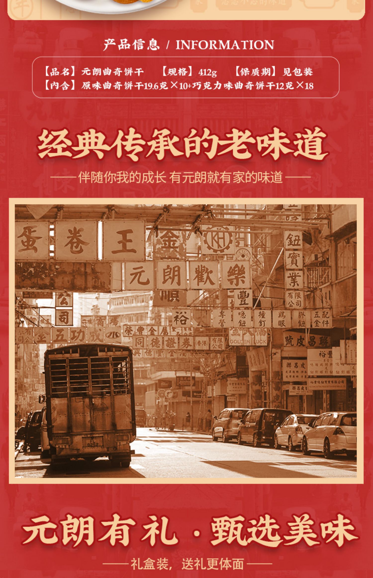 元朗原味巧克力曲奇饼干礼盒装过年年货送礼糕点零食小吃休闲食品