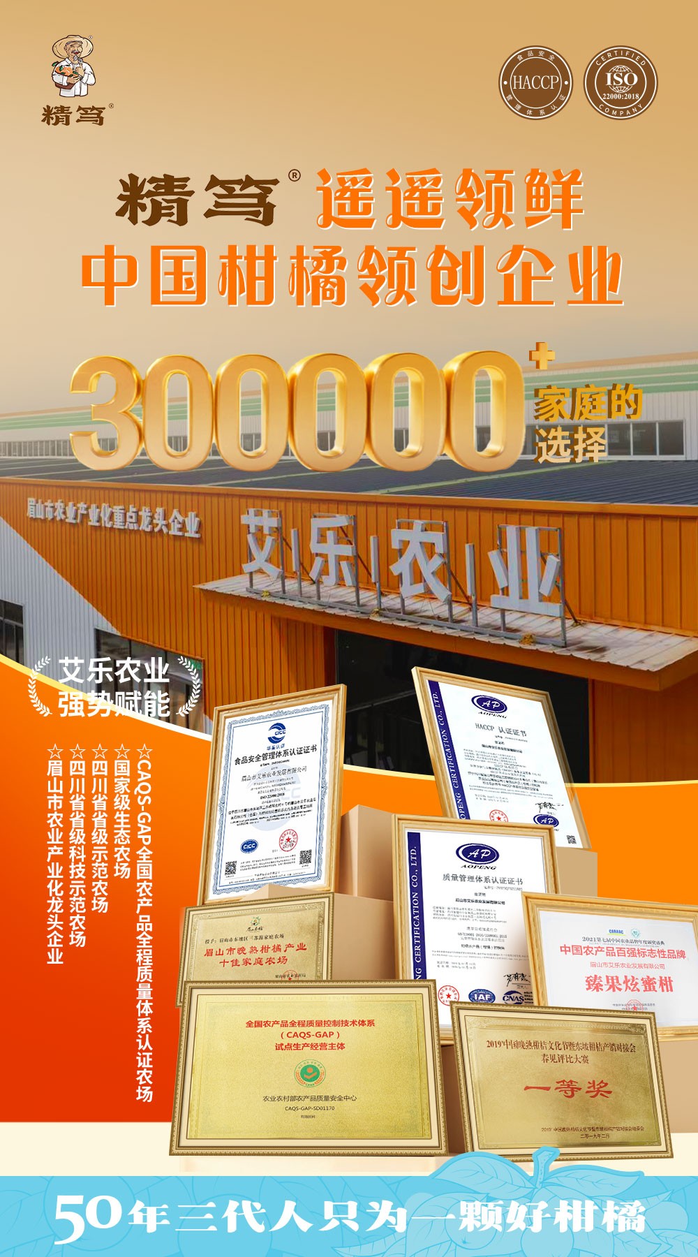 隶属艾乐农业旗下高端柑橘品牌,依托企业赋能,荣获多项国家级、省级荣誉: