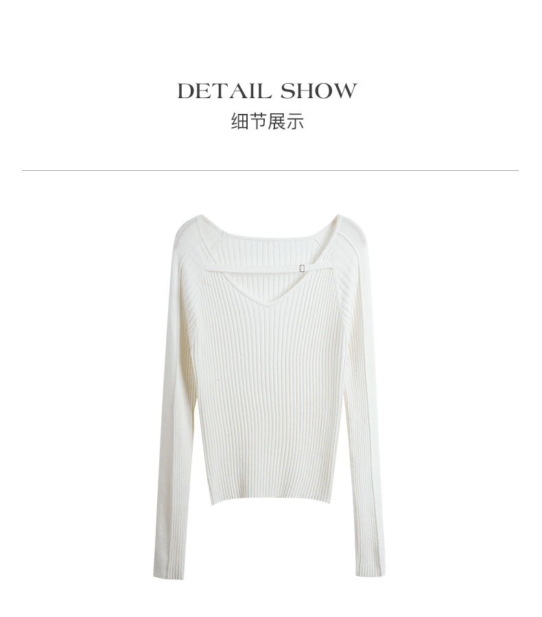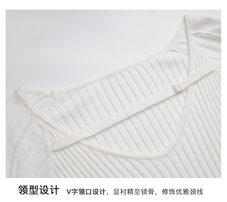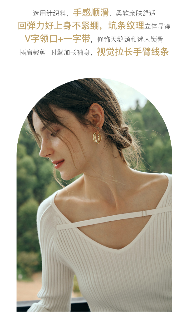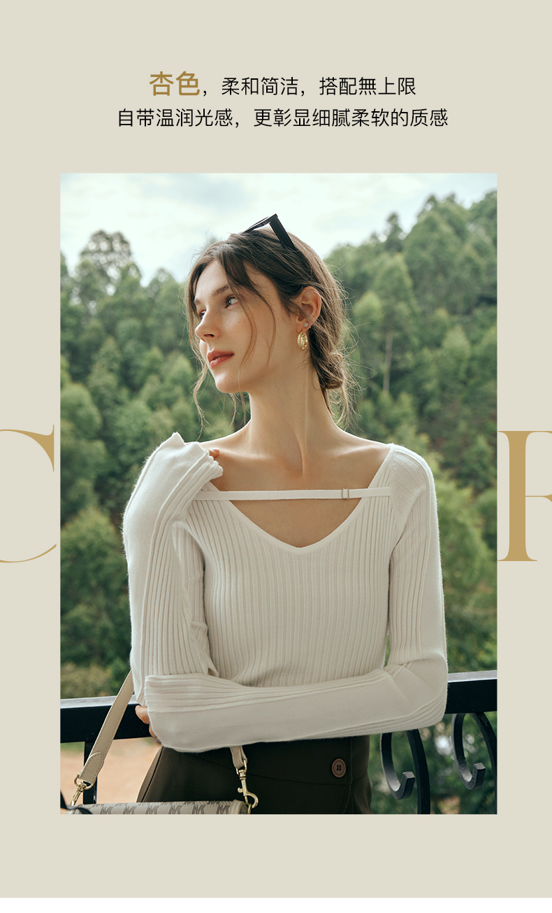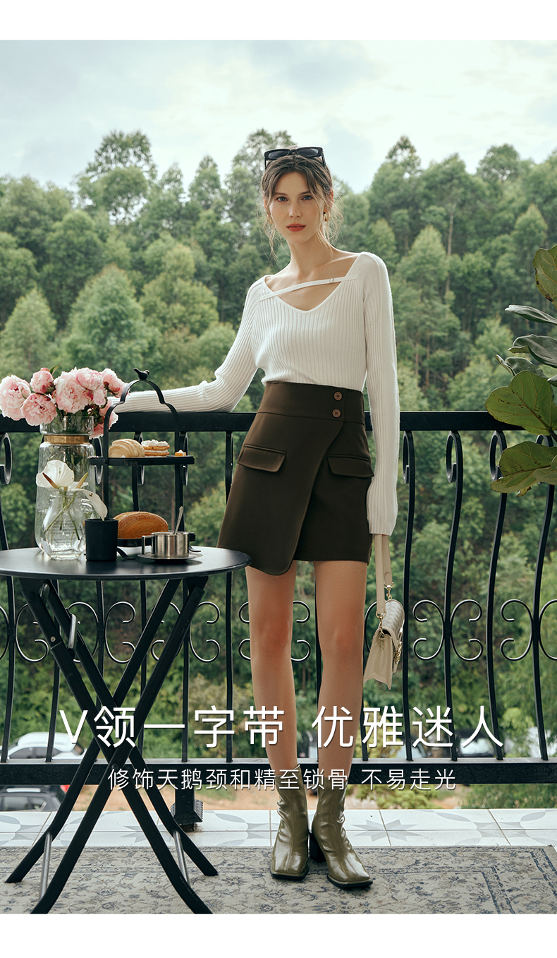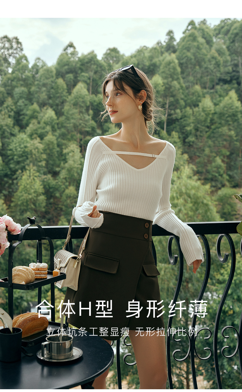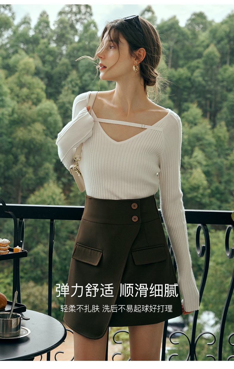 OLrain欧芮儿长袖针织衫女初秋2023年新款修身一字领设计感套头衫