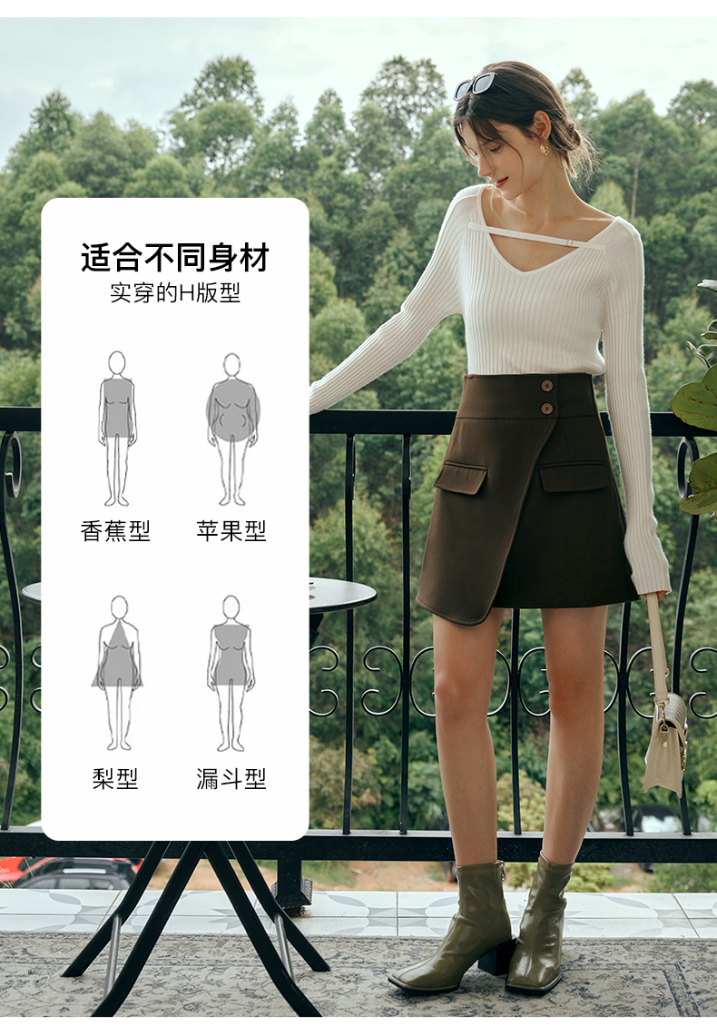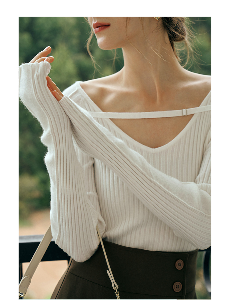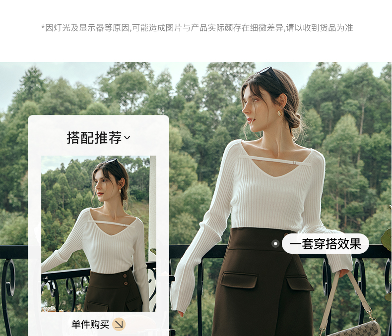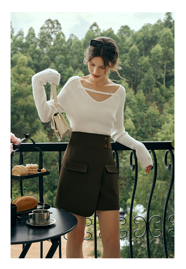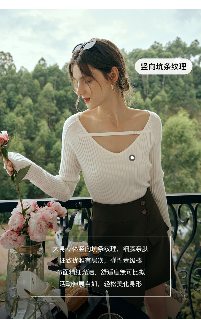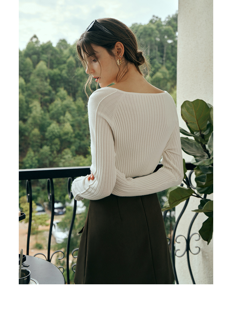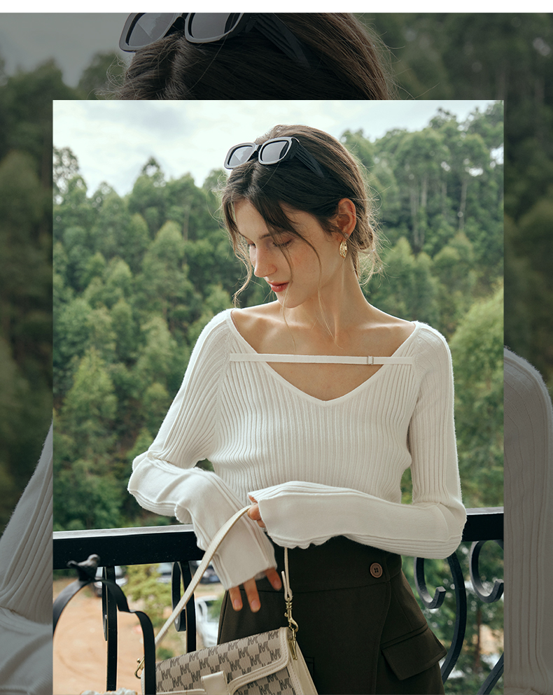 OLrain欧芮儿长袖针织衫女初秋2023年新款修身一字领设计感套头衫