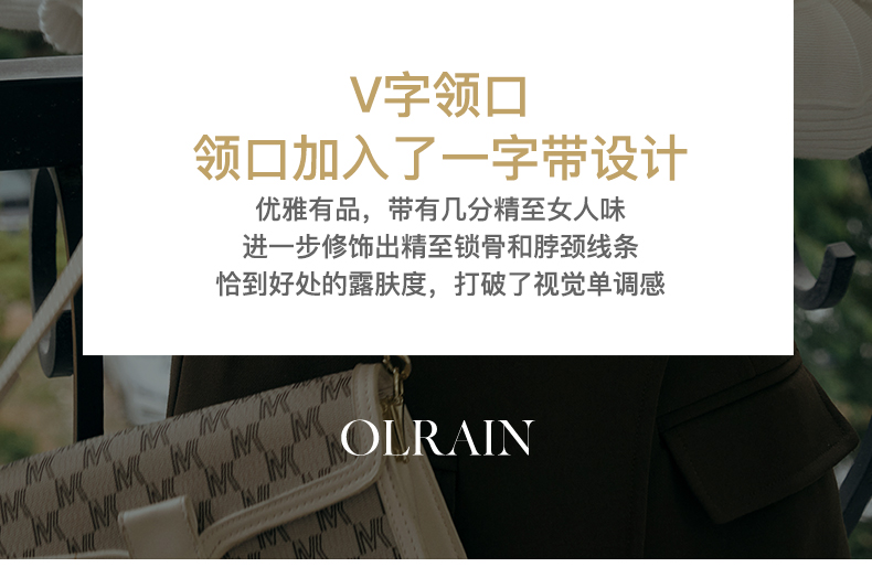 “精致”是欧芮儿olrain品牌文化的核心,欧芮儿认为,精致的女人,不但要外在动人,更要内在迷人,内外兼修,有魅力、有气质、有内涵,自信而不自傲,优雅而不矫揉,自有万种风情而不轻浮,更不故作矜持。