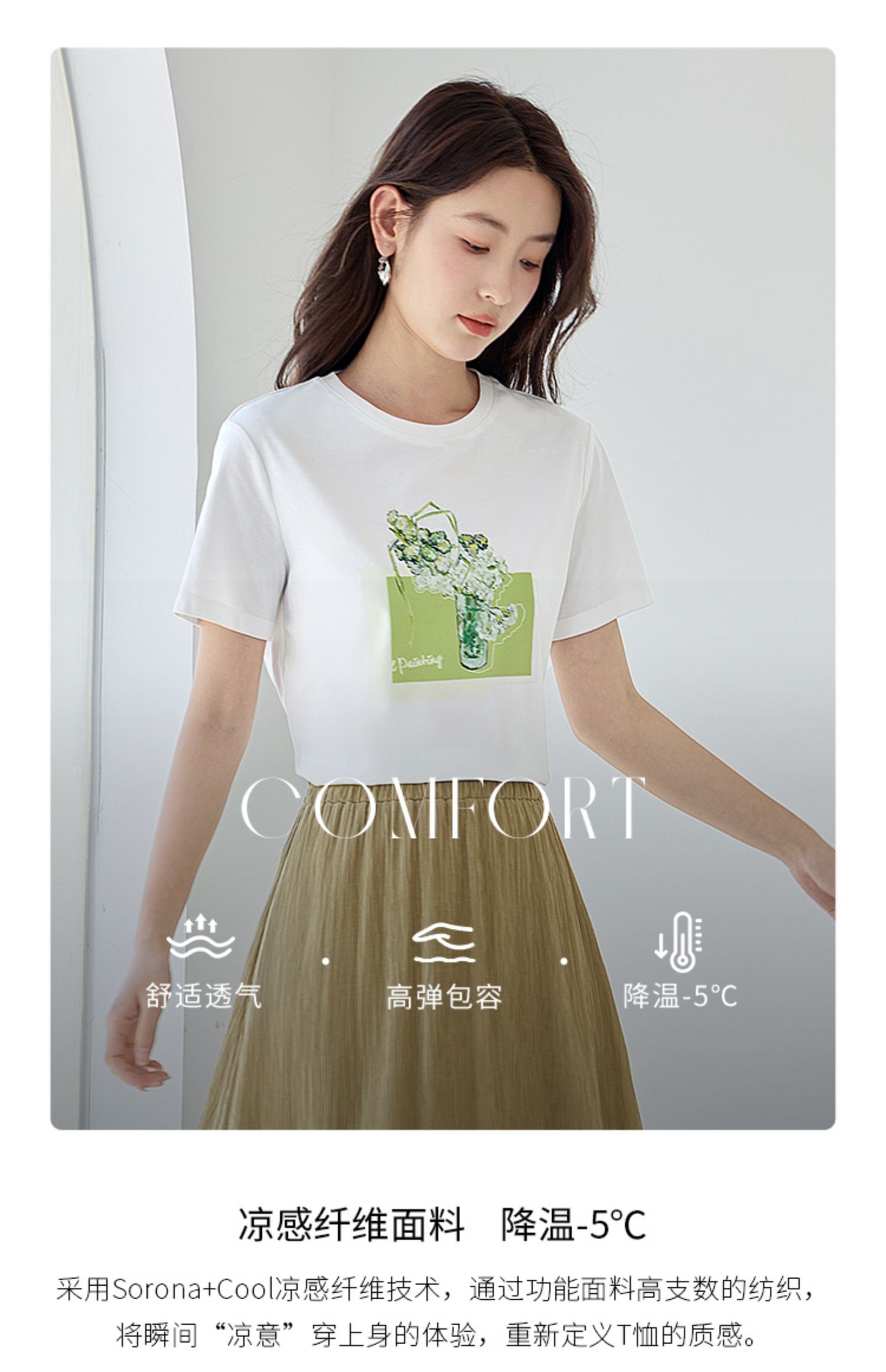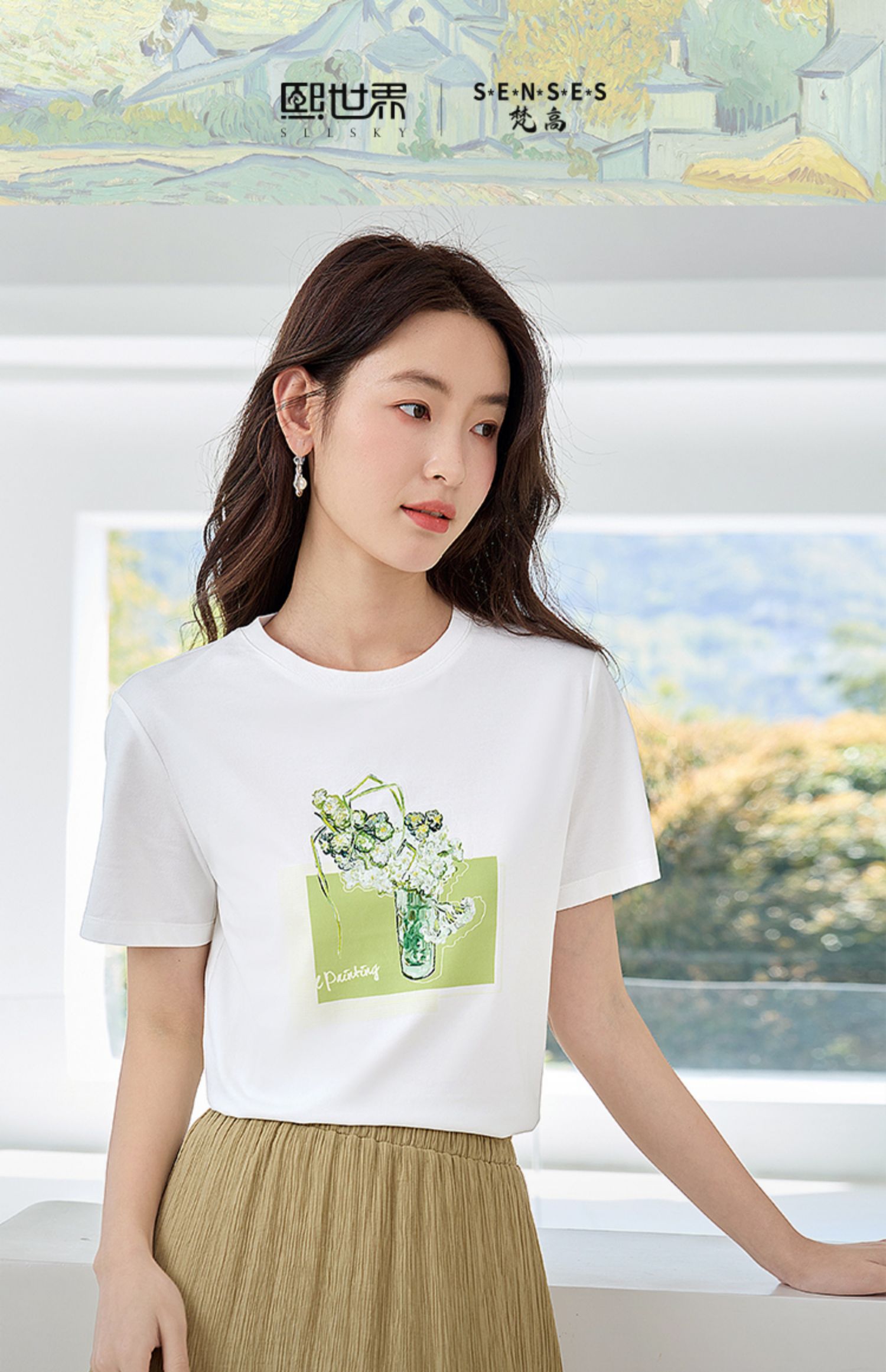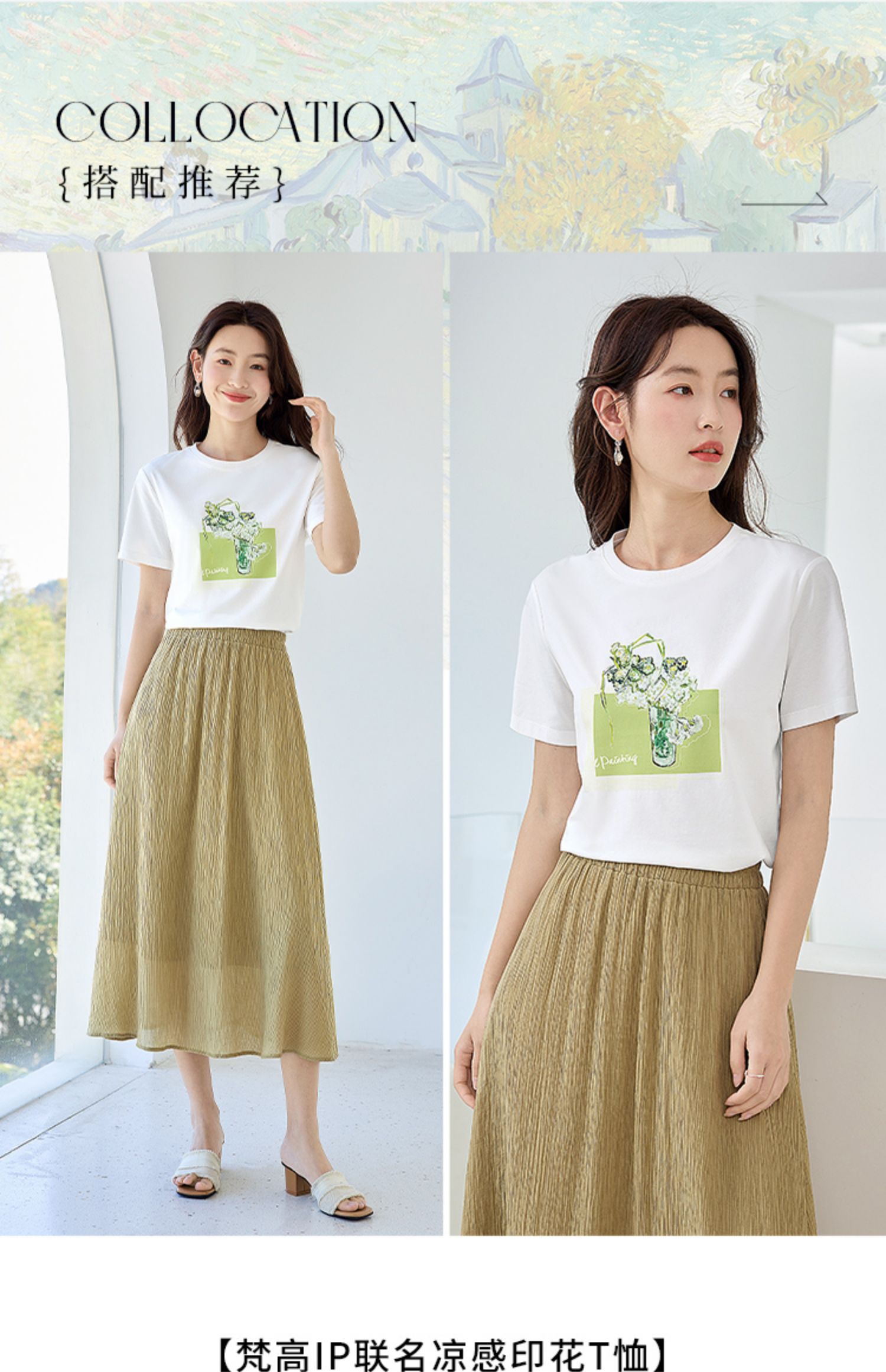 【断码清仓】【梵高联名】熙世界艺术名画印花T恤短袖夏装凉感白色体恤上衣
