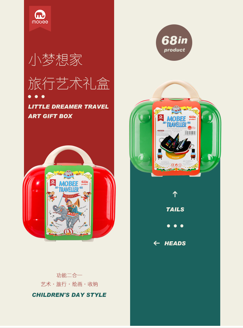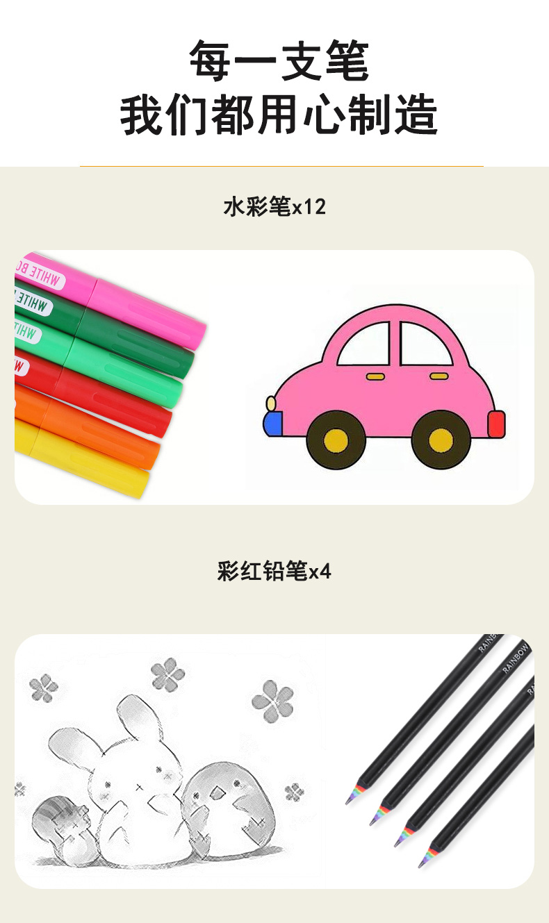 mobee儿童马克笔画笔礼盒画画工具小学生绘画套装美术彩色笔幼儿园可水洗蜡笔礼盒61生日礼物