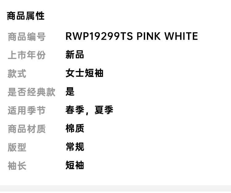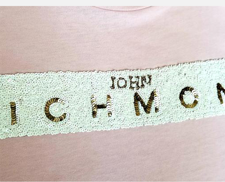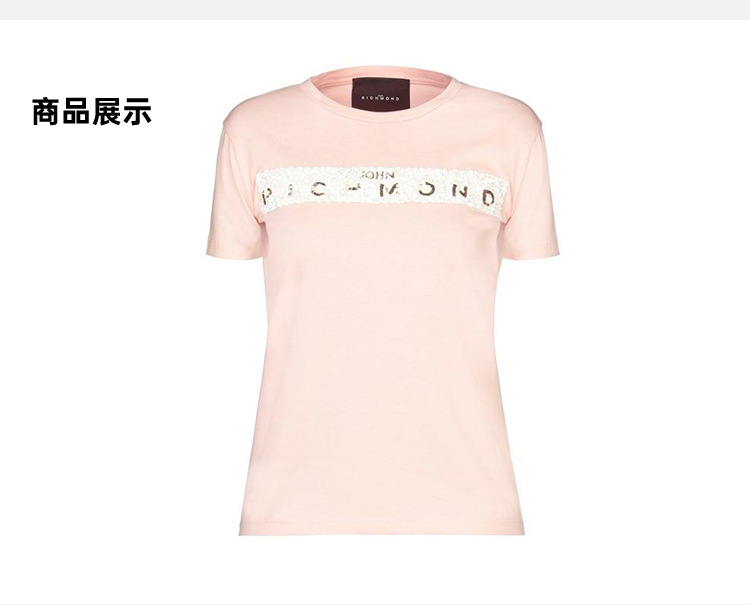 RICHMOND 女士棉质亮片字母圆领短袖T恤 粉色 RWP19299TS PINK WHITE