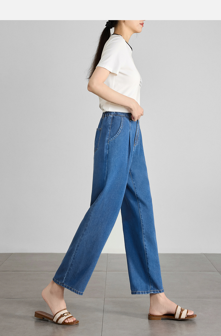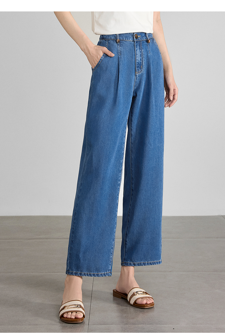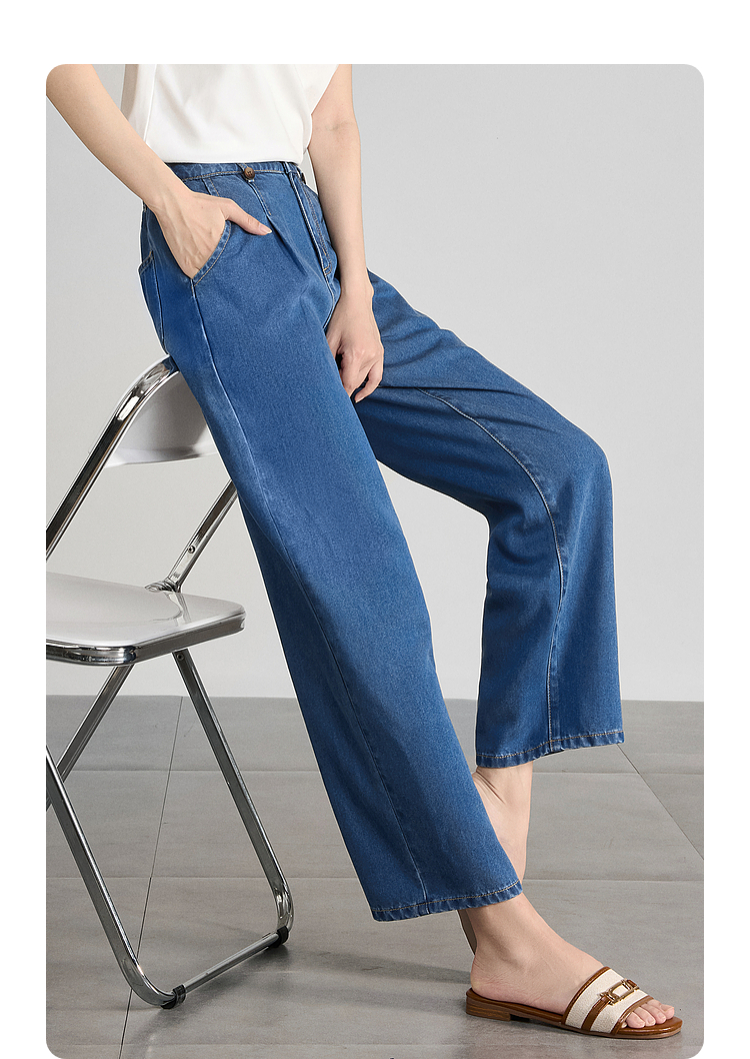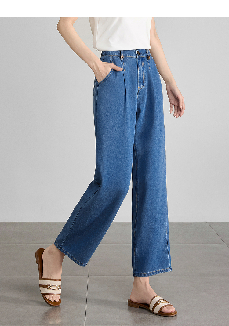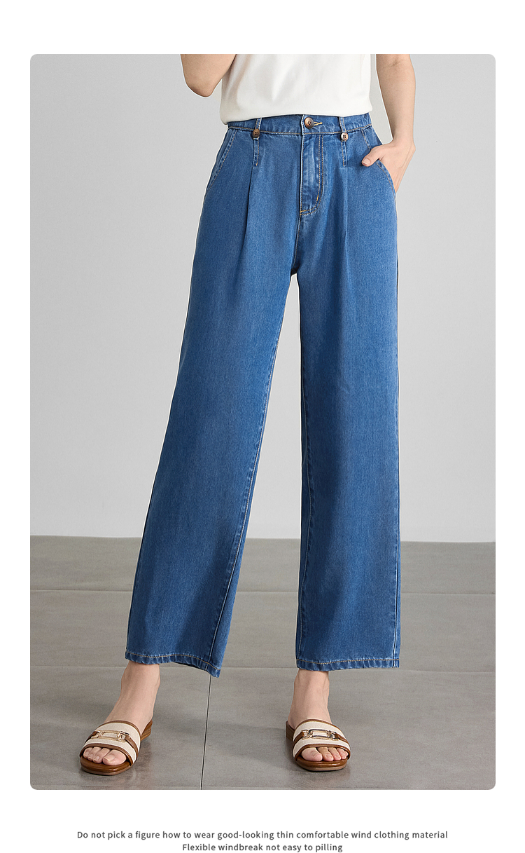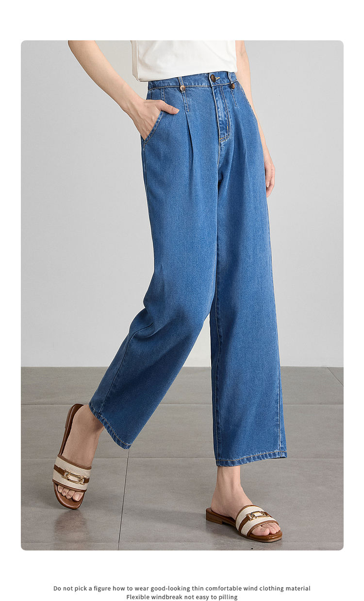 【五折购】熙世界凉感天丝牛仔裤薄款2025夏季新款九分裤子宽松阔腿直筒裤