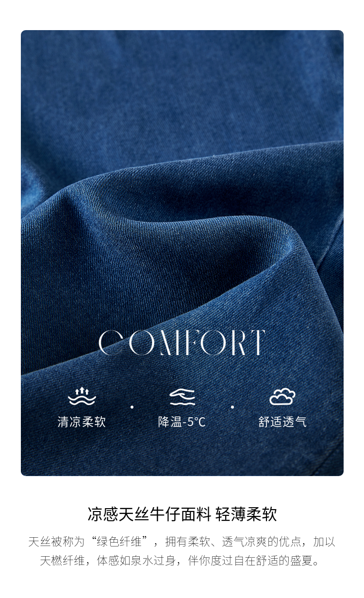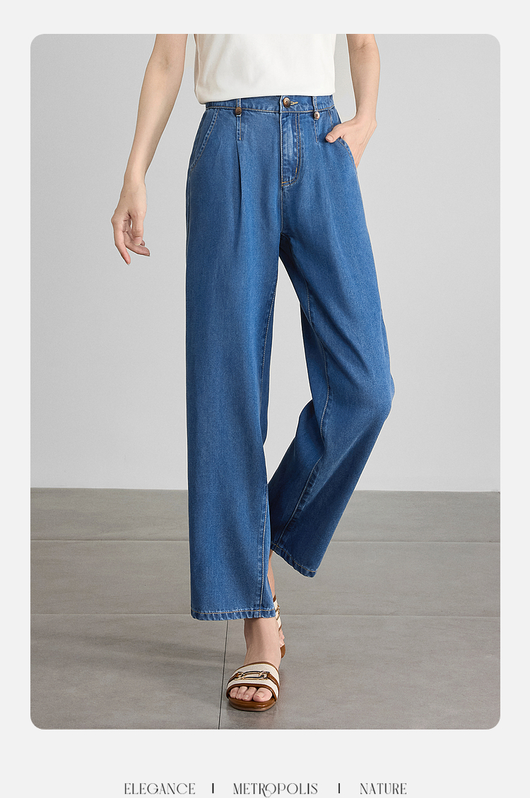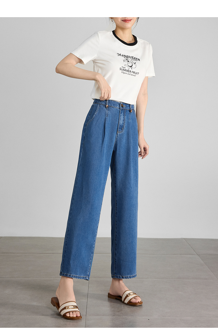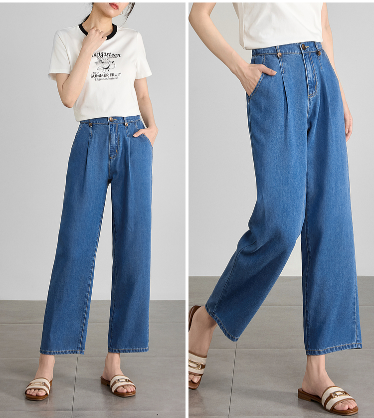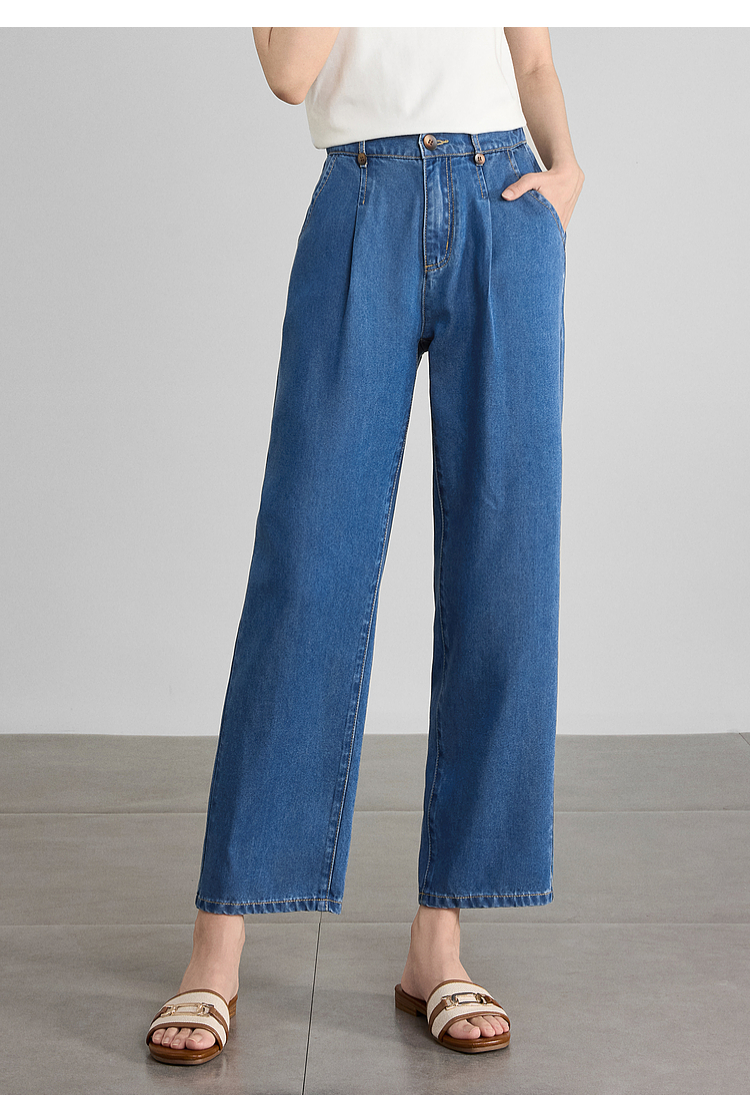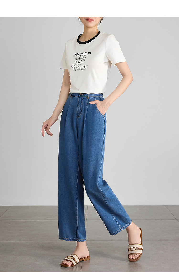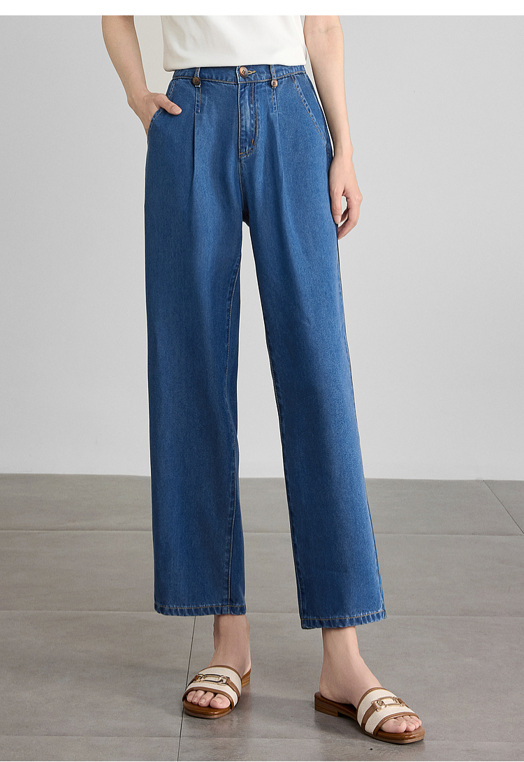 【五折购】熙世界凉感天丝牛仔裤薄款2025夏季新款九分裤子宽松阔腿直筒裤