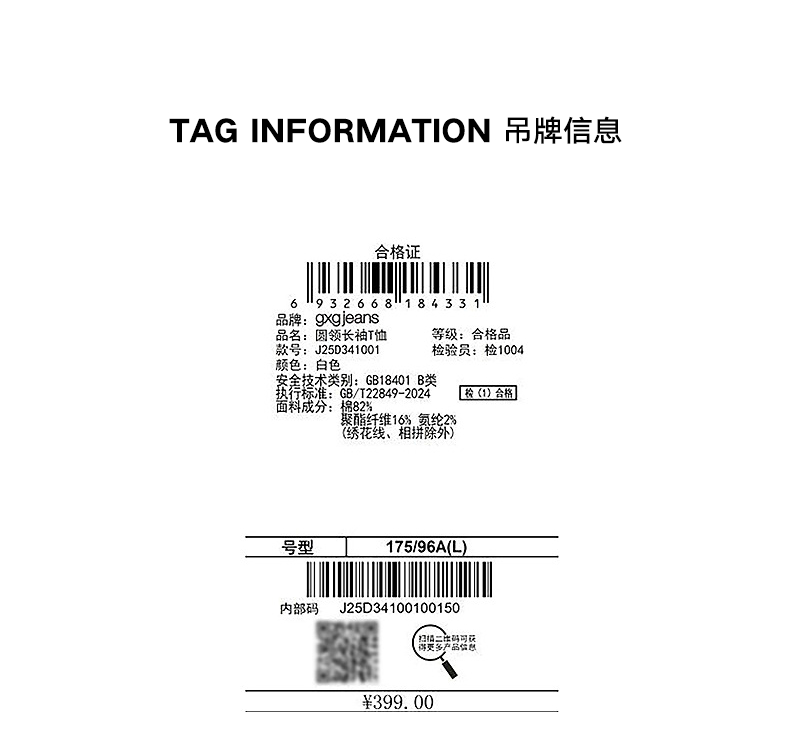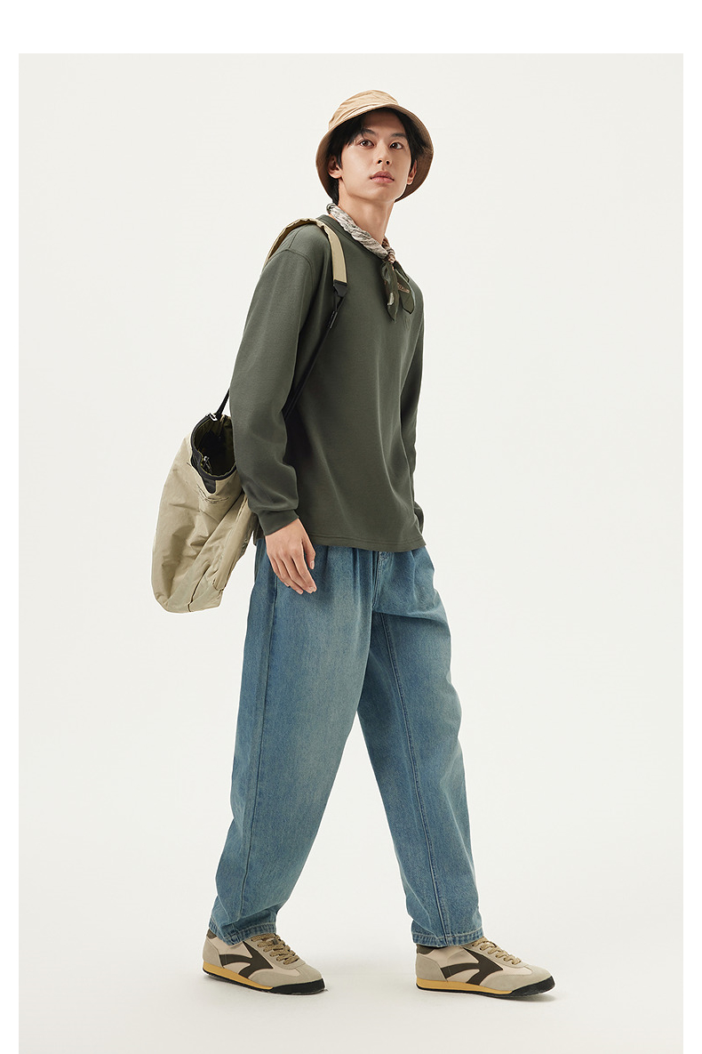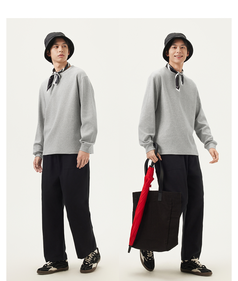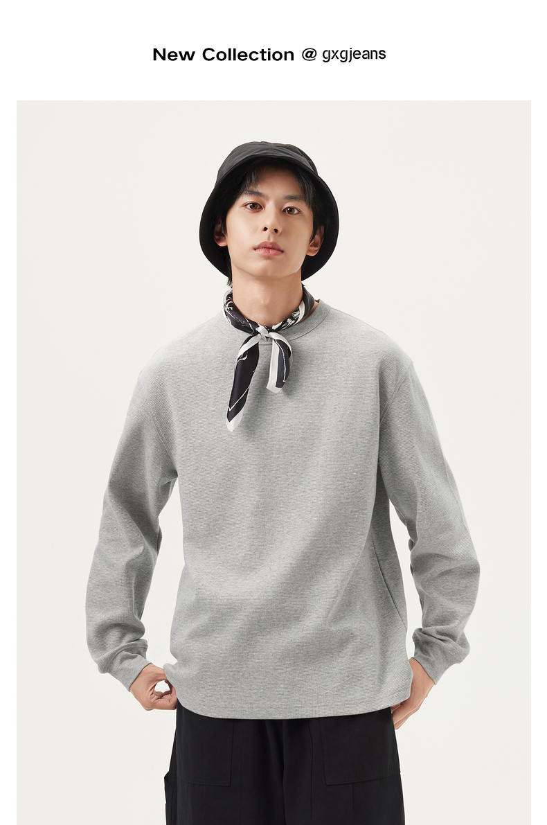 gxg.jeans男装 多色肌理面料基础圆领长袖T恤男内搭 25年春热卖