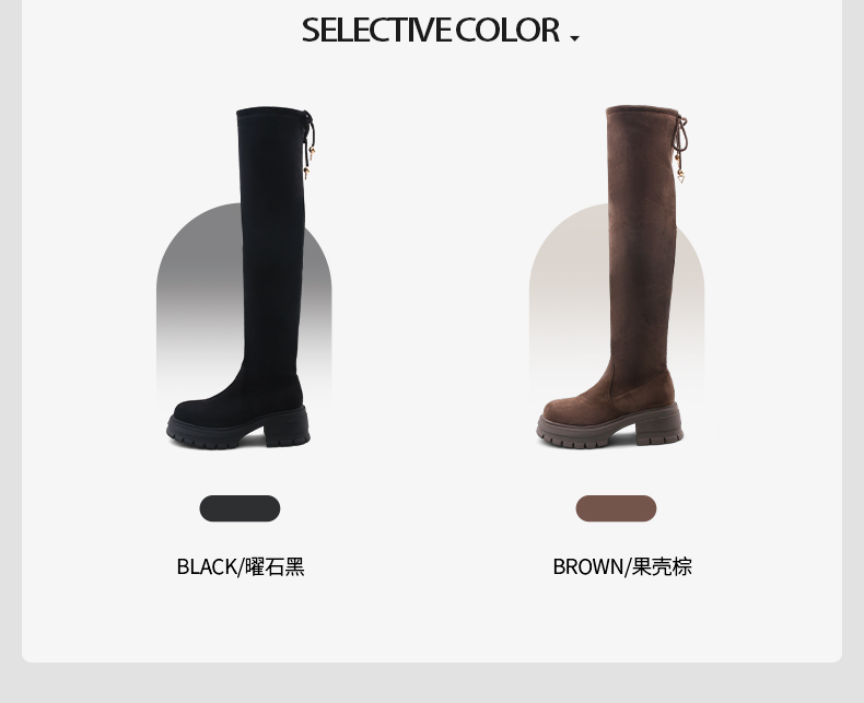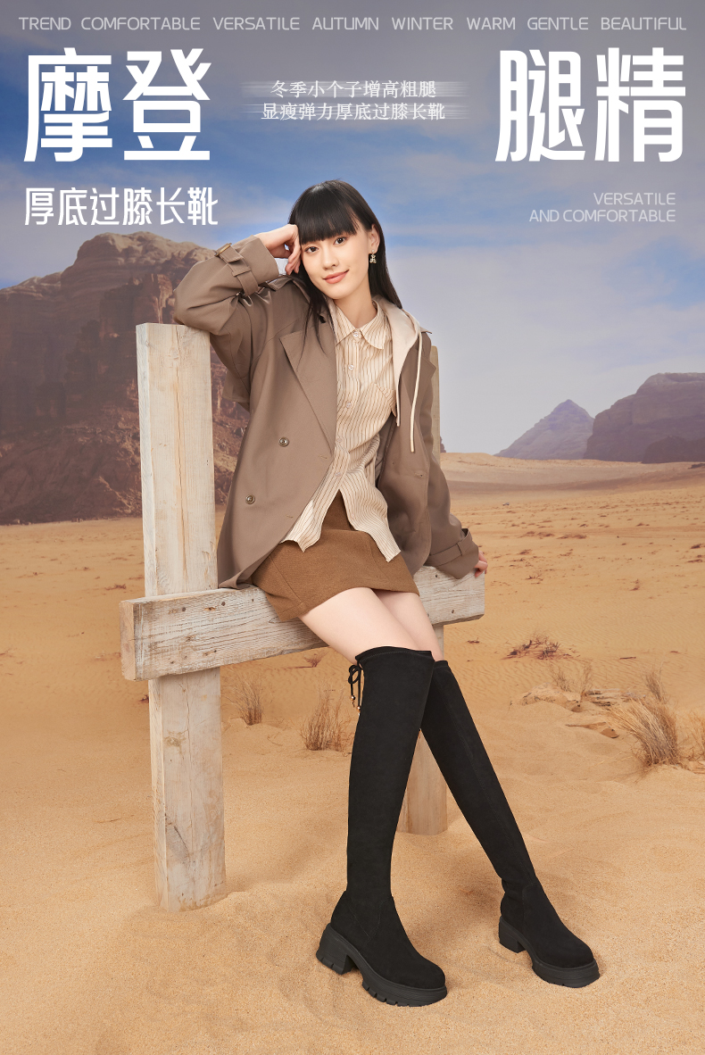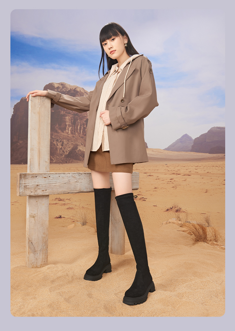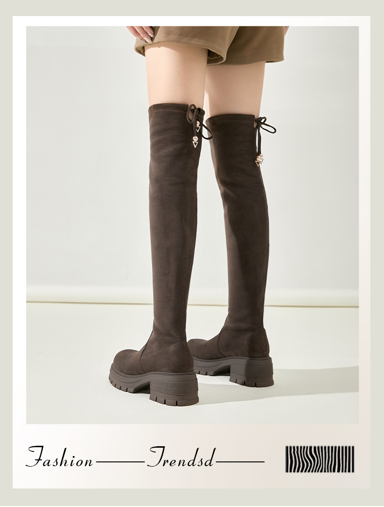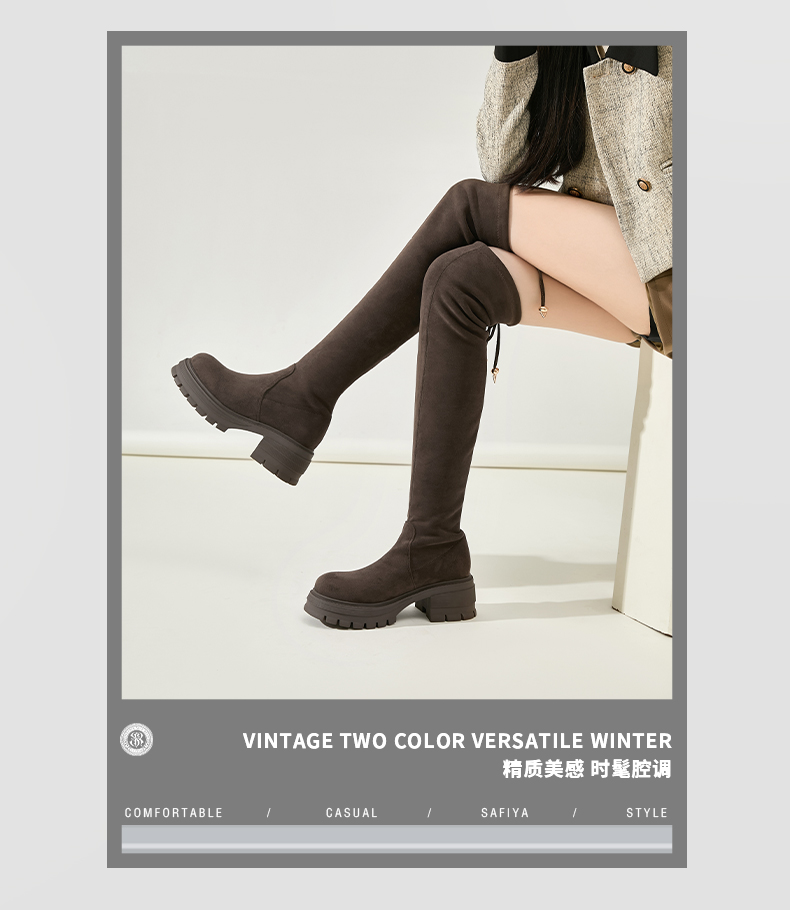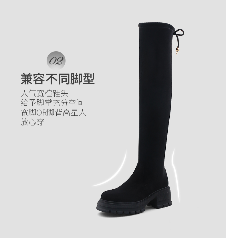 预售5天发|Safiya/索菲娅2024冬季小个子增高粗腿显瘦弹力厚底过膝长靴 SF44117259