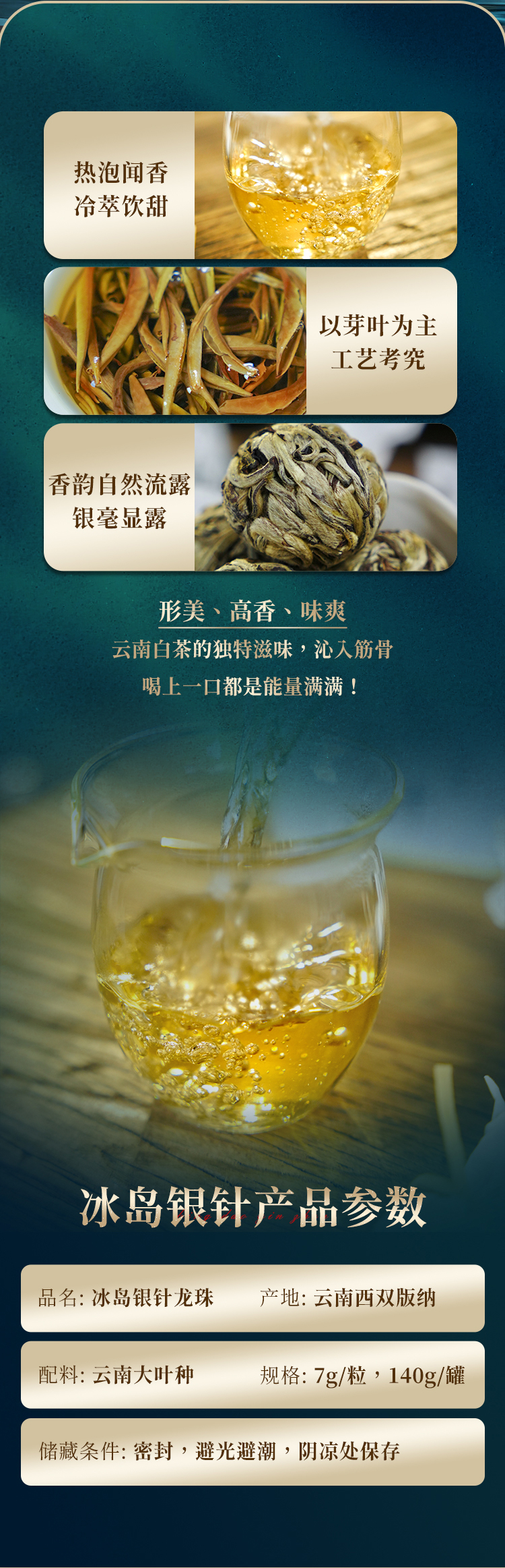 【冰岛银针龙珠】2023年冰岛全芽头白茶龙珠,自然冰糖甜~ 好喝耐泡 7g/粒,140g/罐