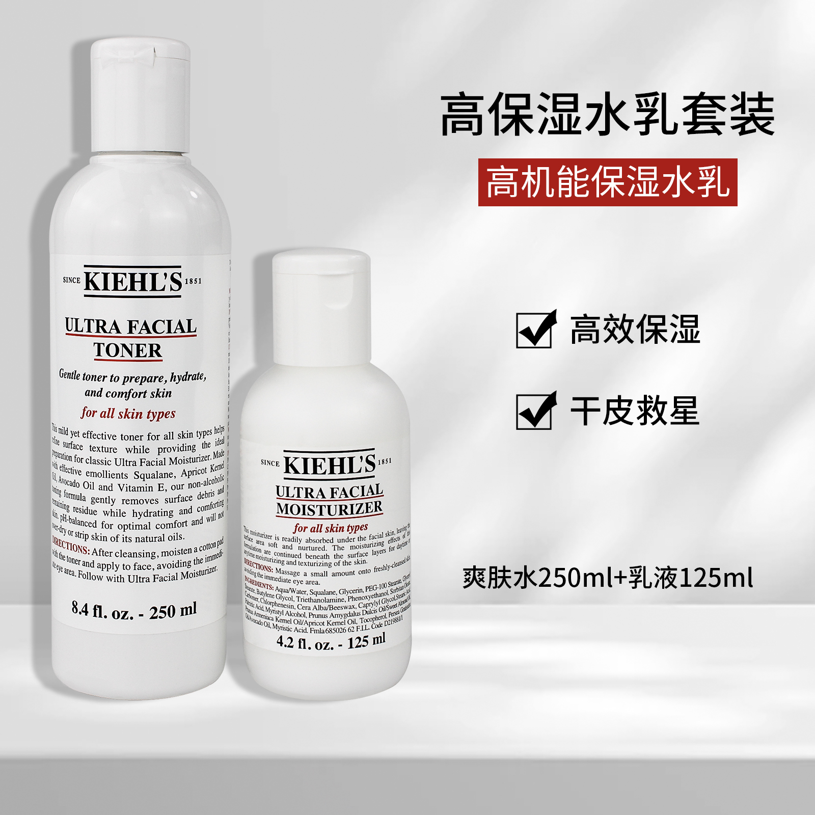【限时特惠】美国 Kiehl's 科颜氏 高保湿精华水乳套装 水250ml+乳液125ml