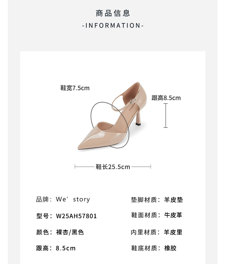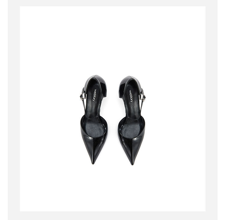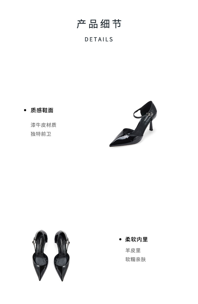 Westory2025年春季尖头中空高跟玛丽珍光面漆皮通勤宴会单鞋W25AH57801