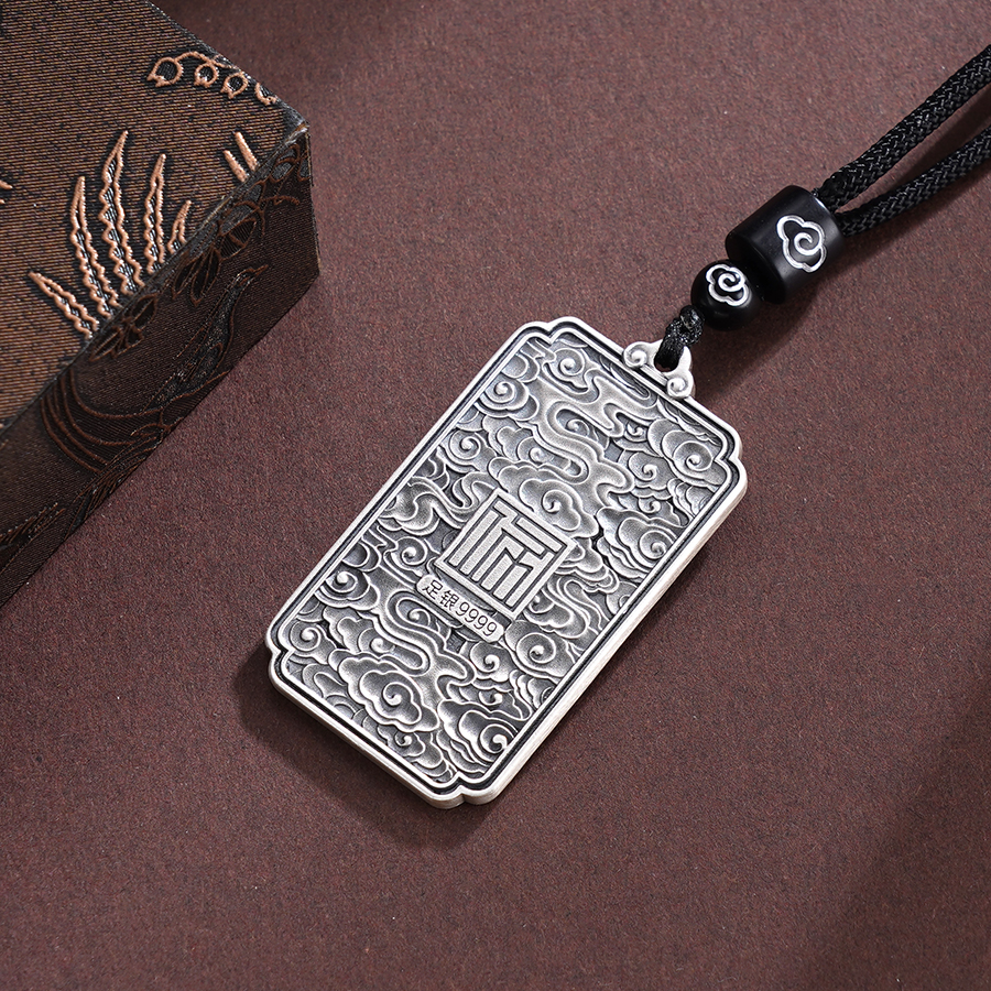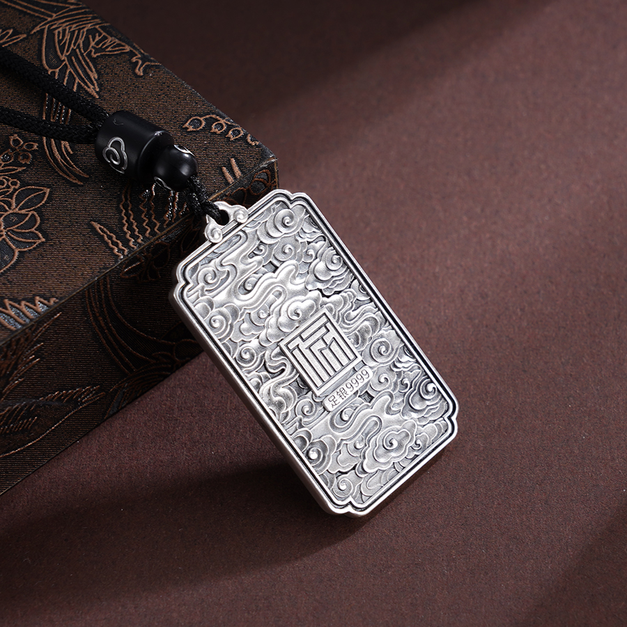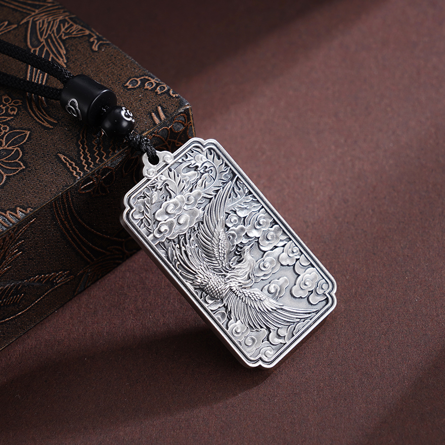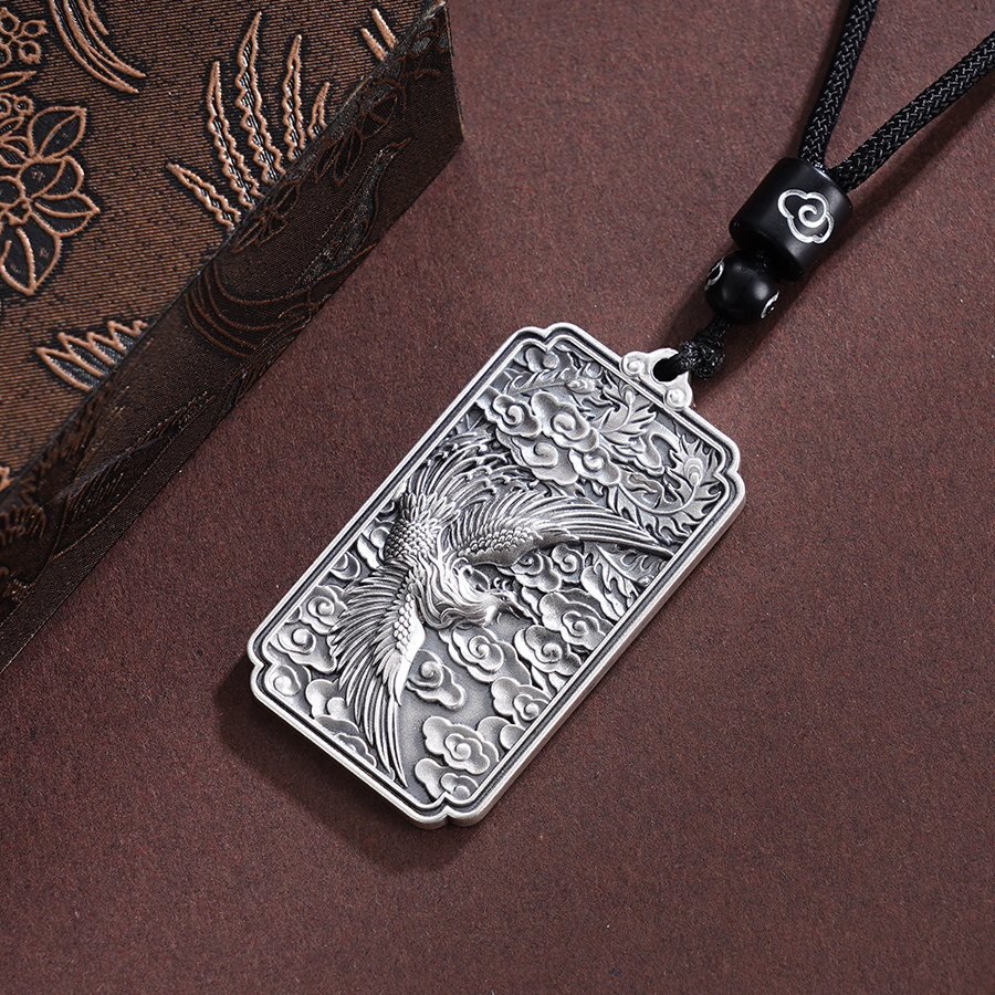 子佩集S999银【云舞凤鸣】套链【BX0280955-1】纯银仿古凤方牌带绳项链原创作品2506