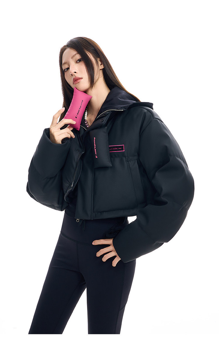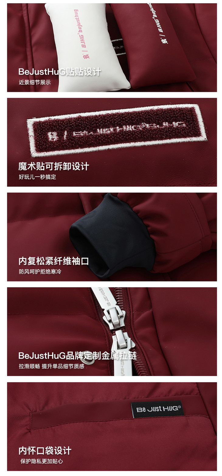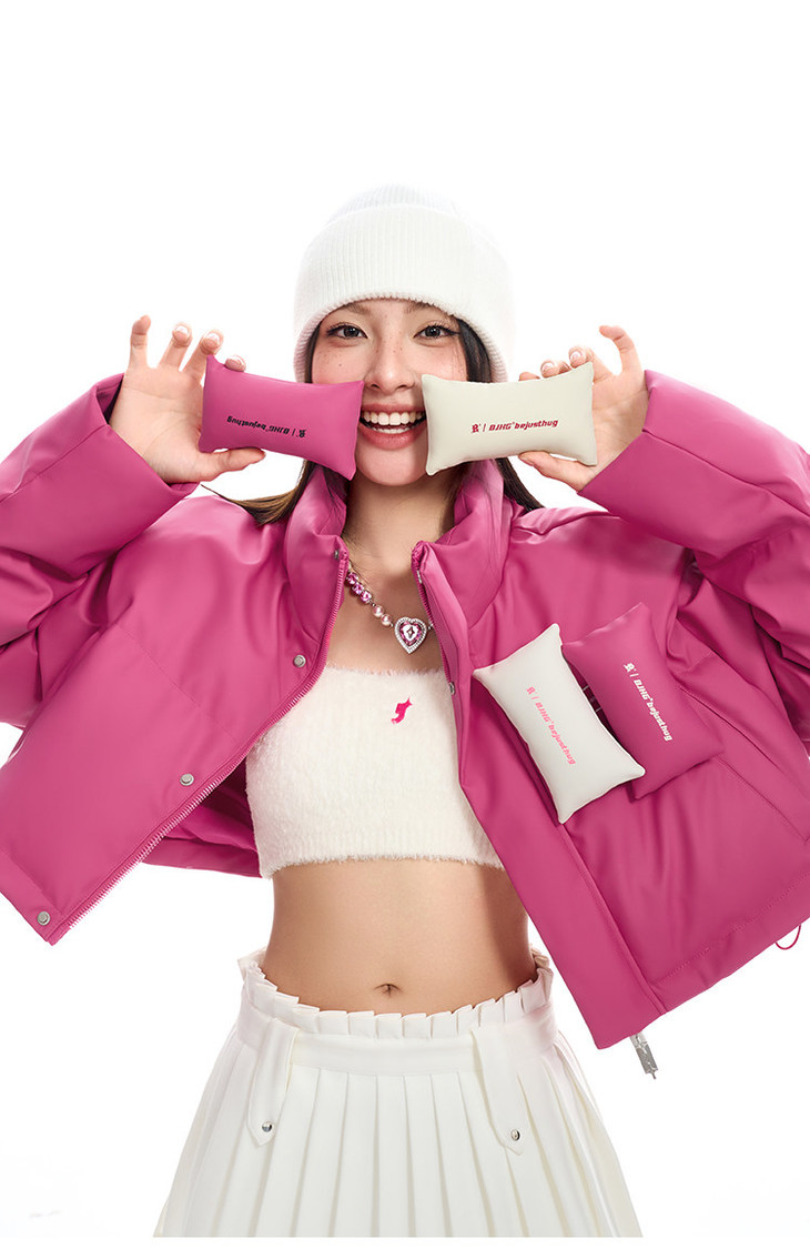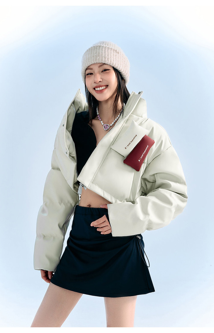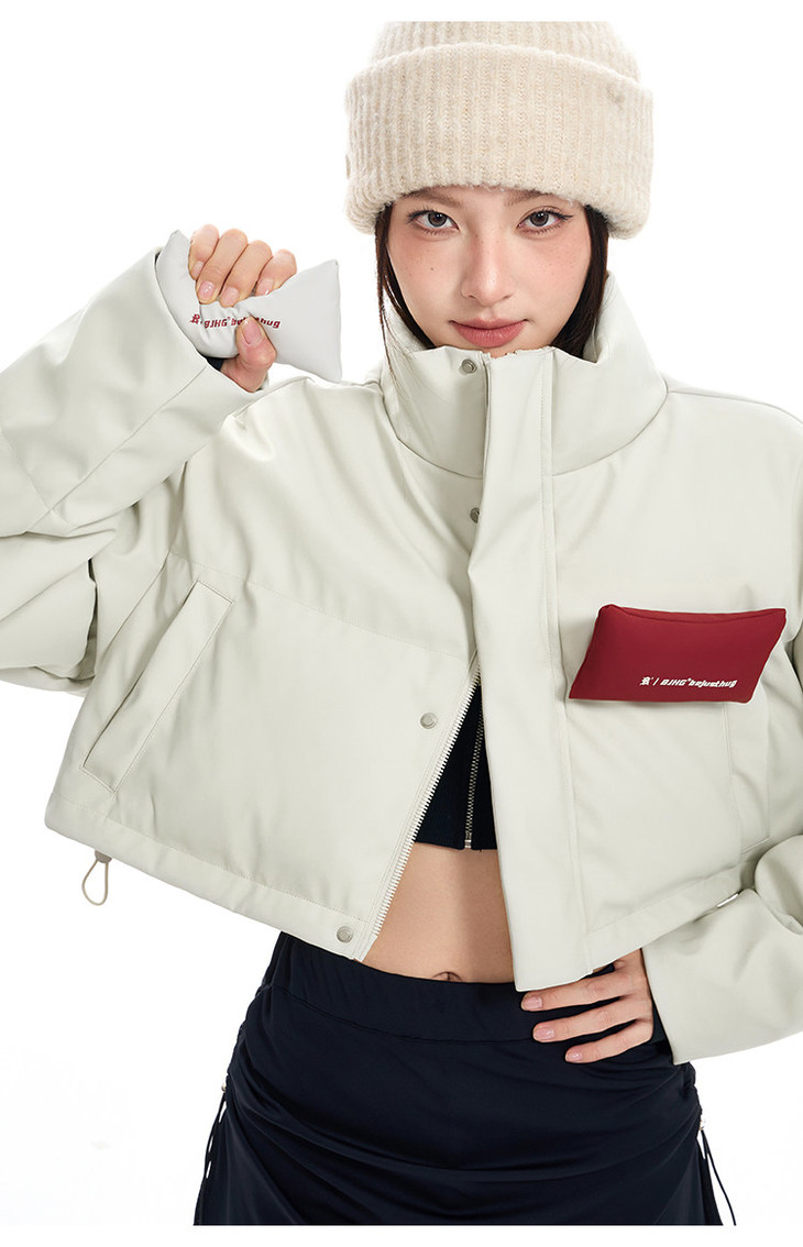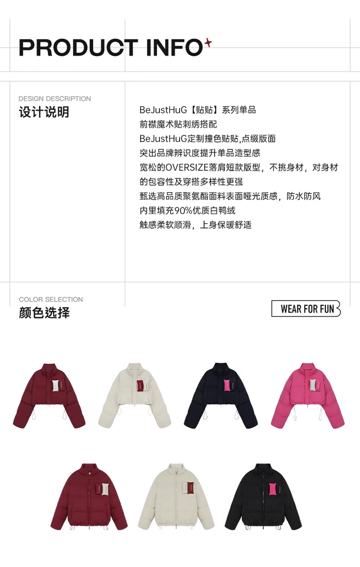 BJHG贴贴2024新款羽绒服女冬季宽松潮牌撞色设计感白鸭绒短款外套