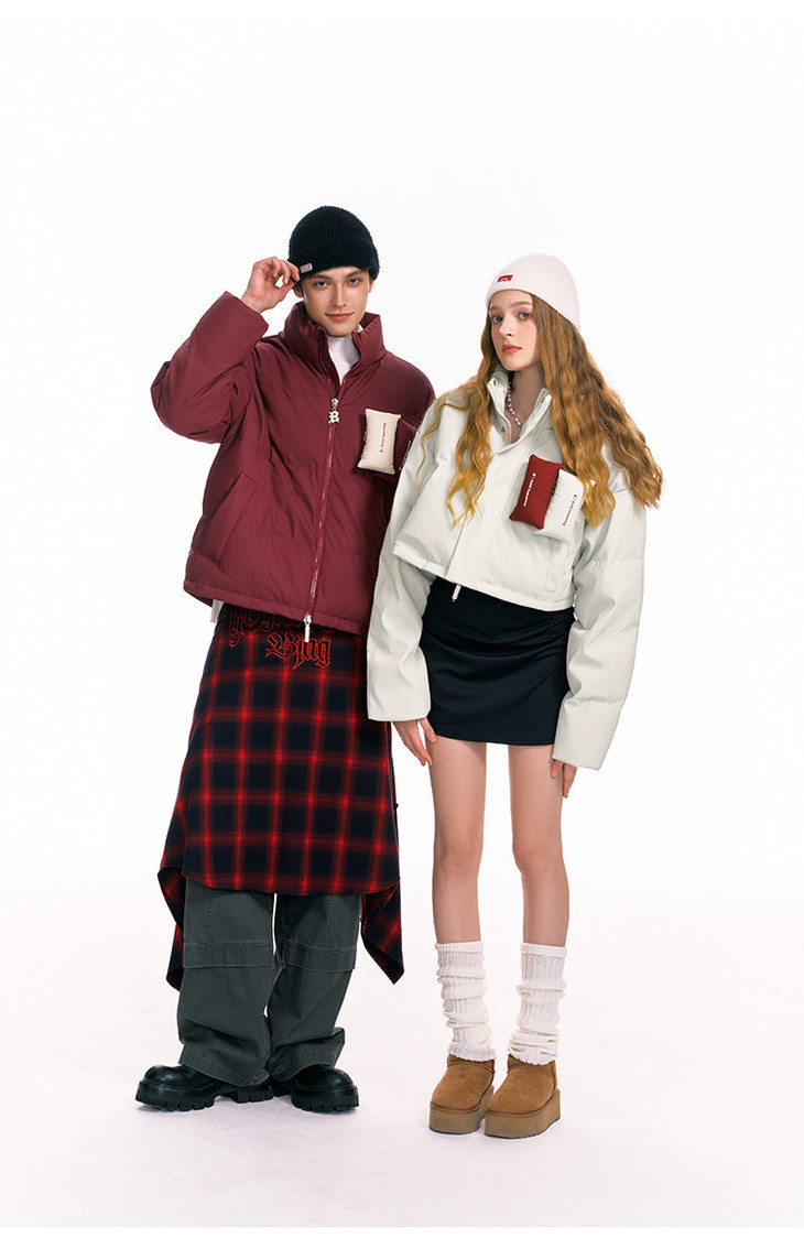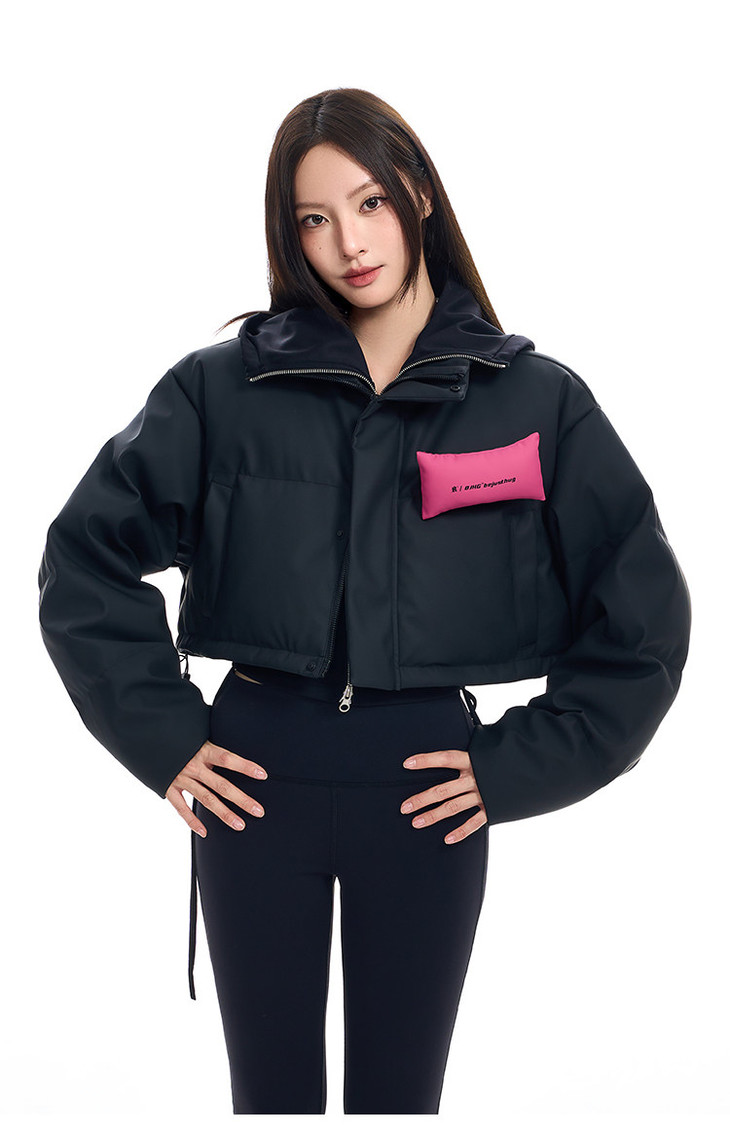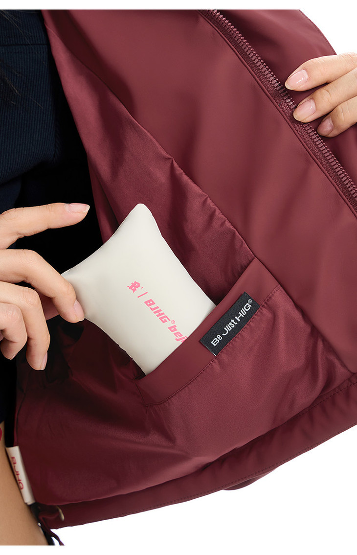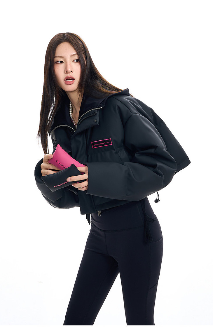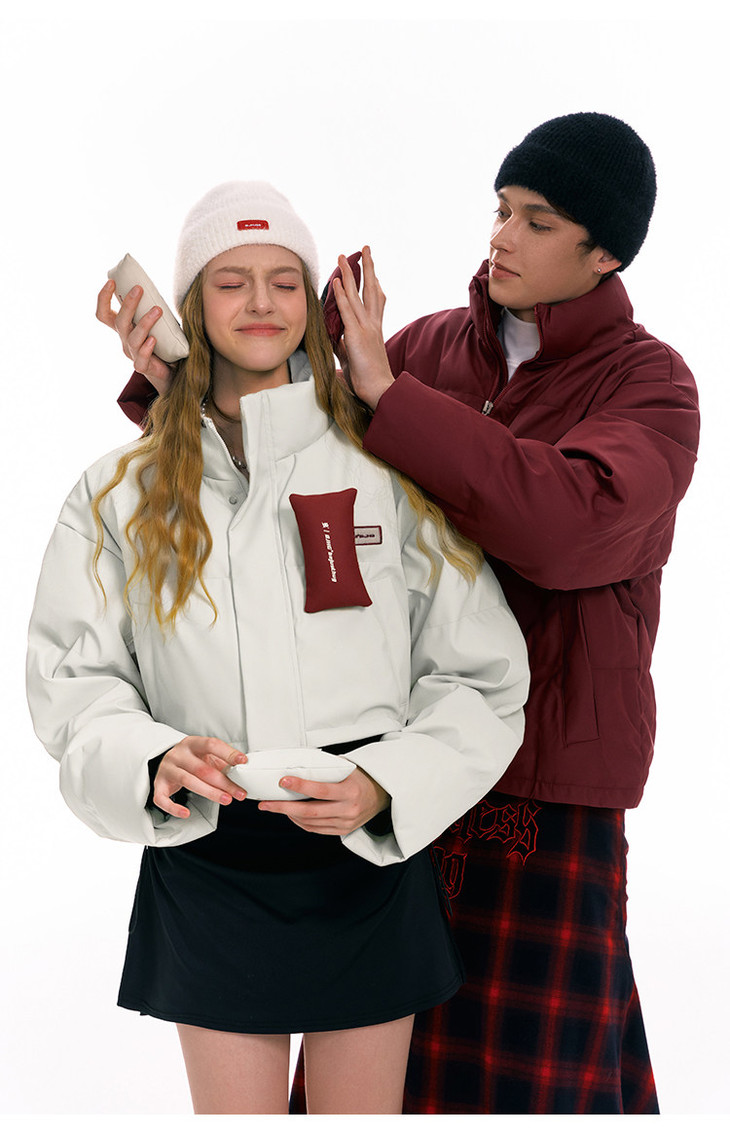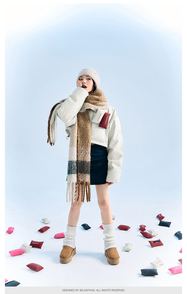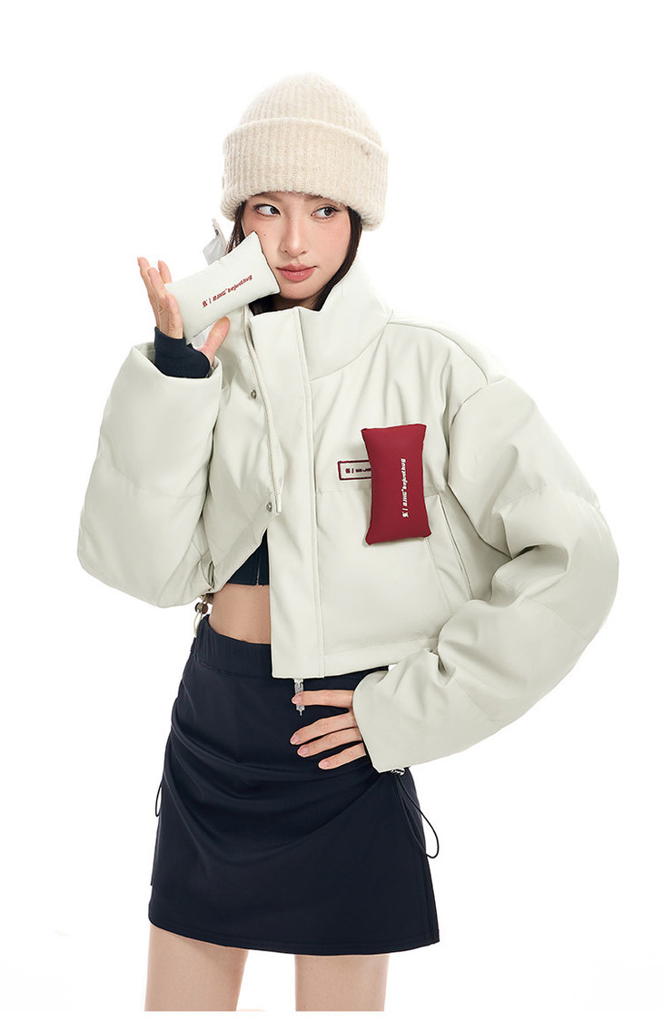 BJHG贴贴2024新款羽绒服女冬季宽松潮牌撞色设计感白鸭绒短款外套