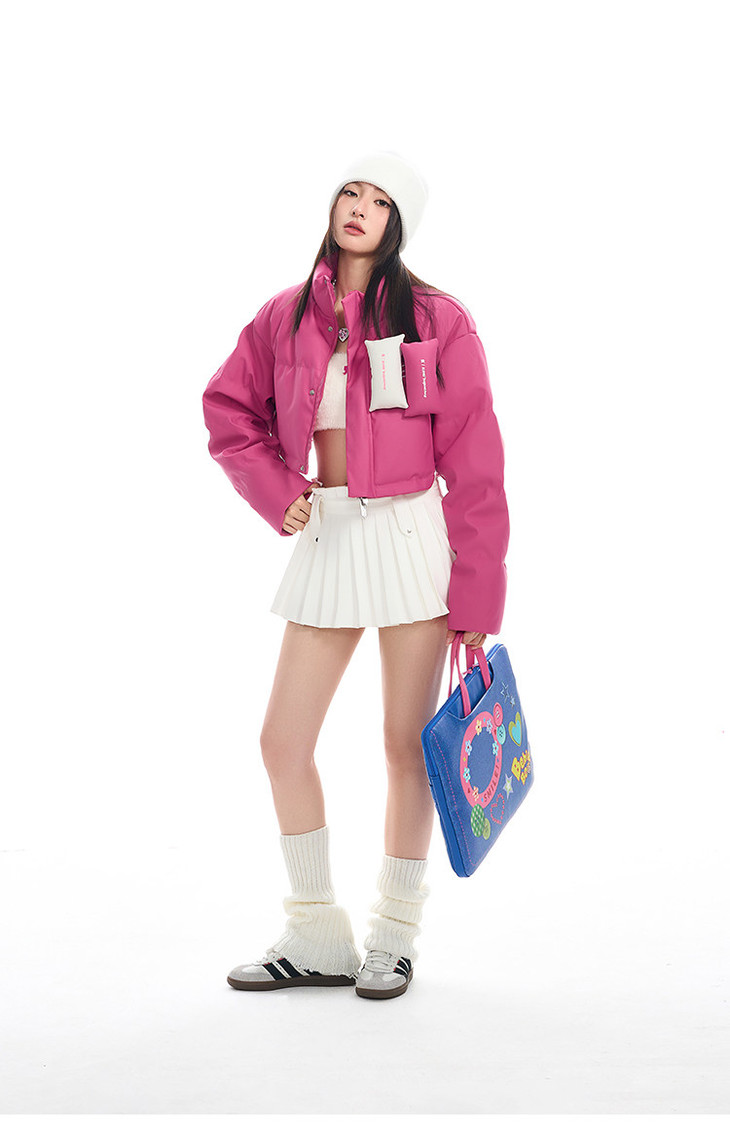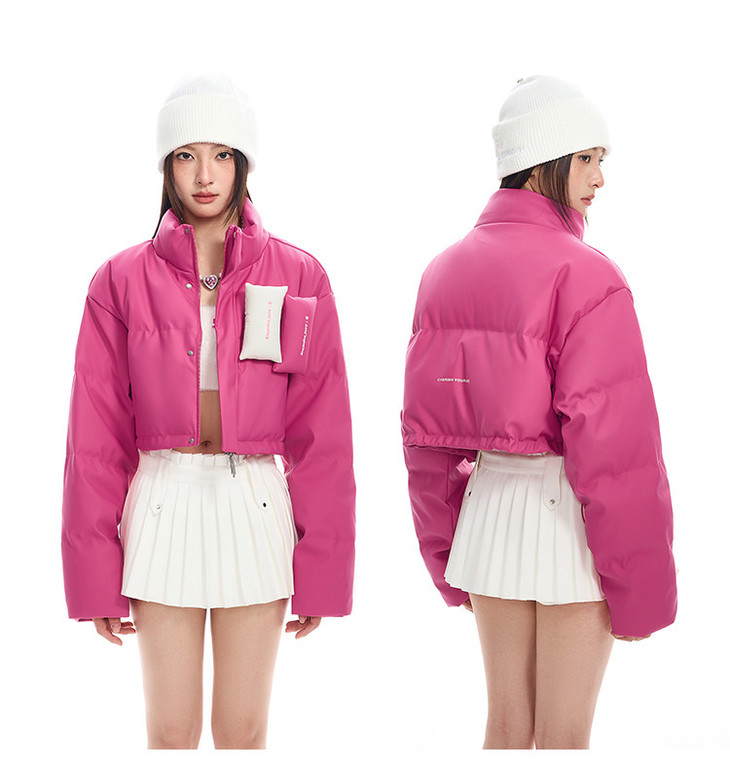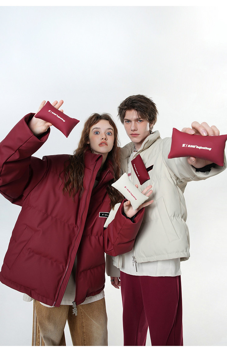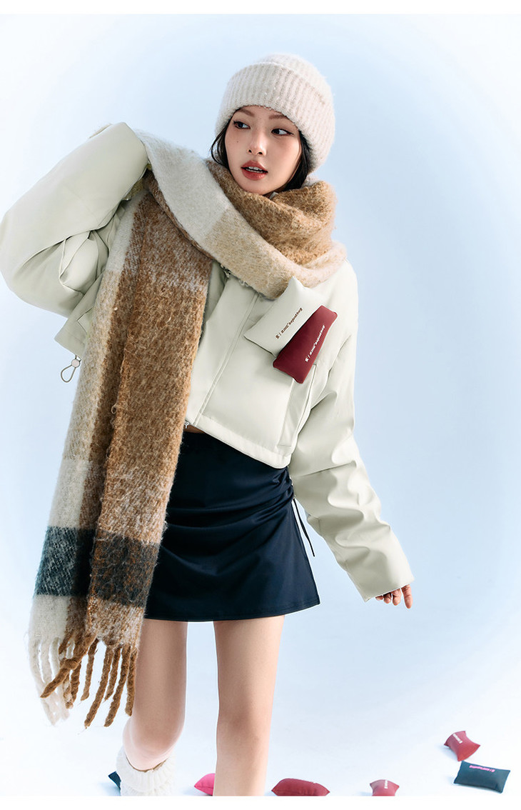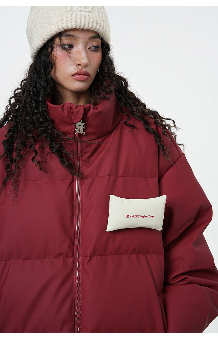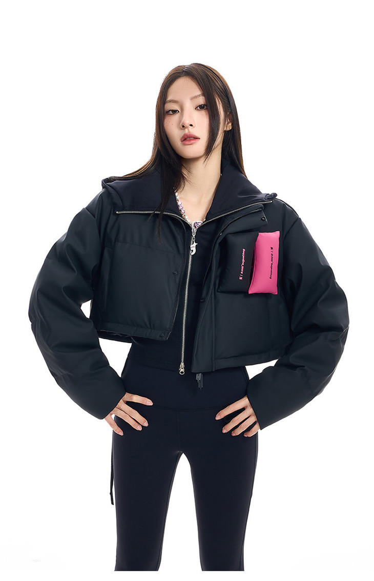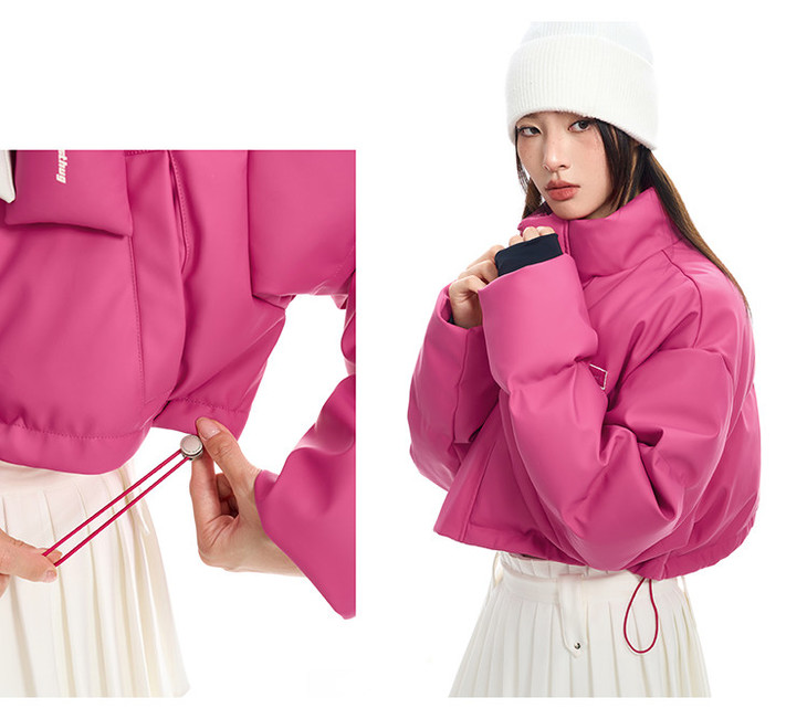 BJHG贴贴2024新款羽绒服女冬季宽松潮牌撞色设计感白鸭绒短款外套