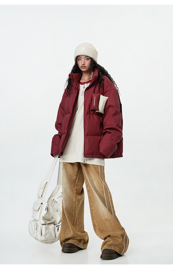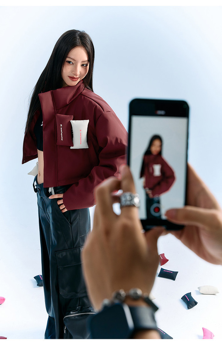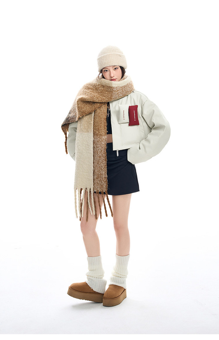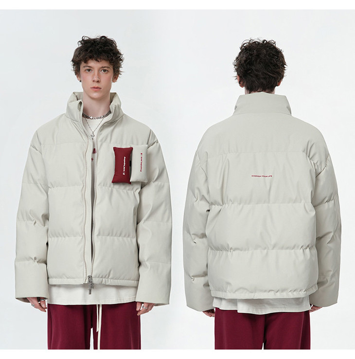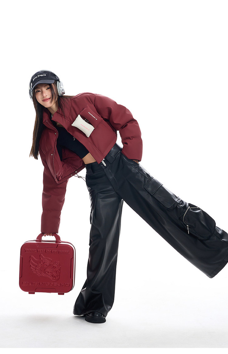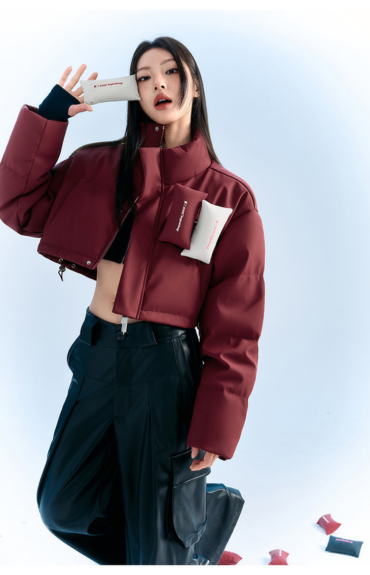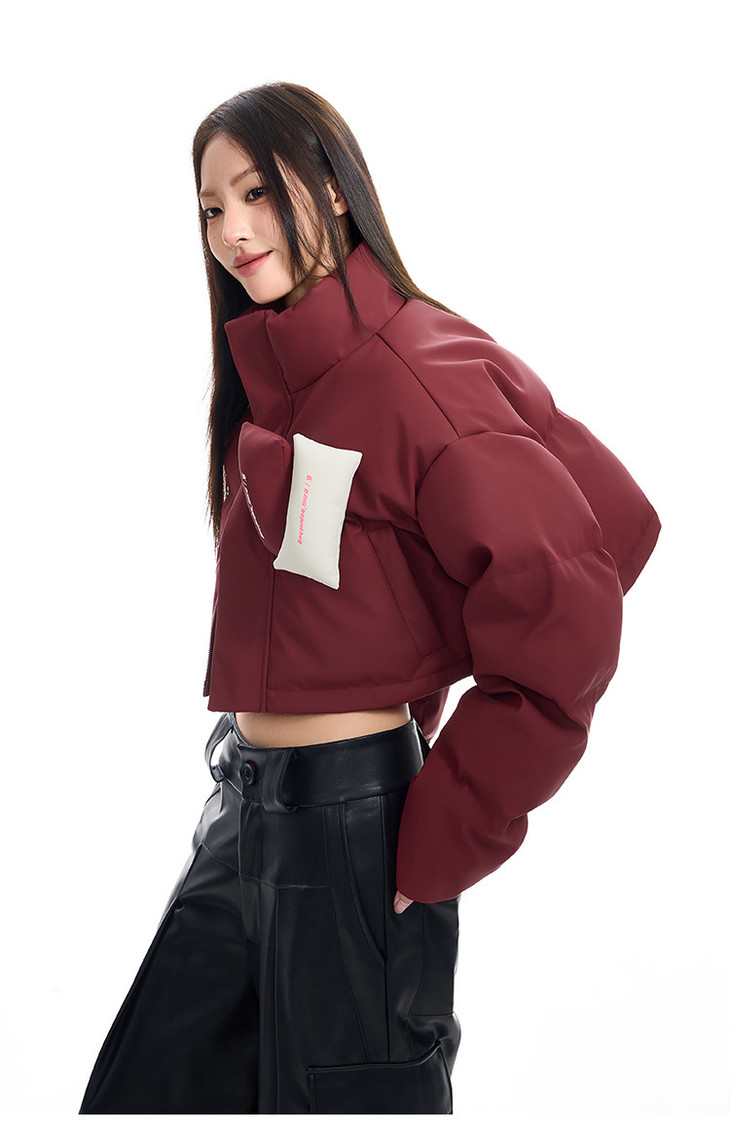 BJHG贴贴2024新款羽绒服女冬季宽松潮牌撞色设计感白鸭绒短款外套