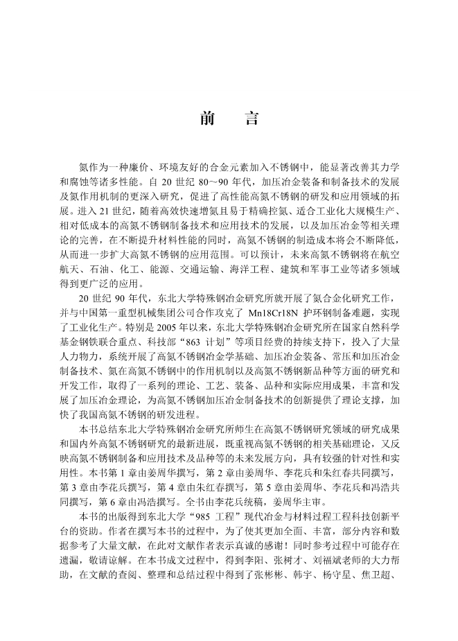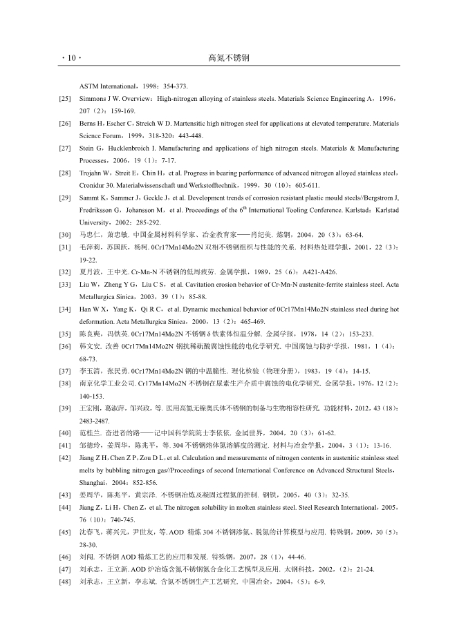 从1988年召开第一届高氮钢国际会议后,相继在联邦德国、日本、比利时和中国等召开了12届,各国的科研人员就高氮钢的研究与开发等议题进行了深入的交流与探讨。高氮钢国际会议的连续召开极大地推动了世界高氮钢的发展,也进一步加深了人们对氮在钢中作用机理的认识。