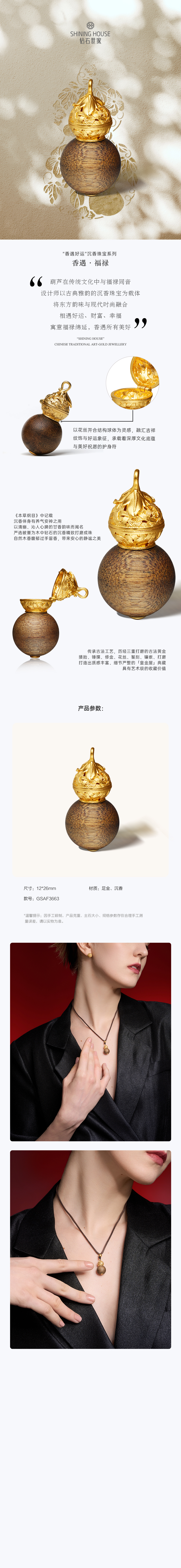 【钜惠价】【沉香黄金】【福满厚禄系列】钻石世家 足金吊坠 花丝葫芦足金沉香吊坠(配绳) 古法黄金黄金吊坠挂坠【黄金产品不支持无理由退换货】预计3-5天发货