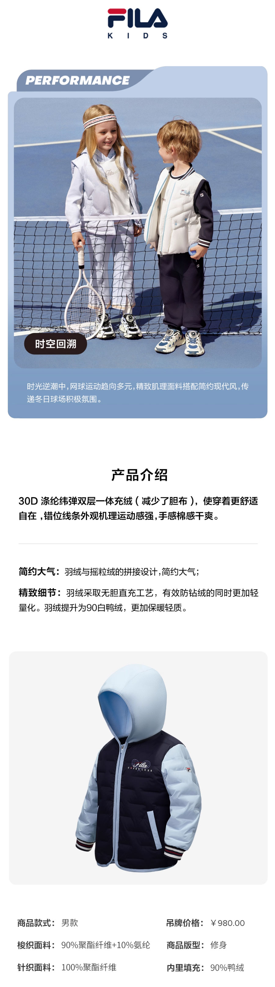 FILA斐乐儿童轻薄羽绒服2025冬新款童装K11B543907FNV