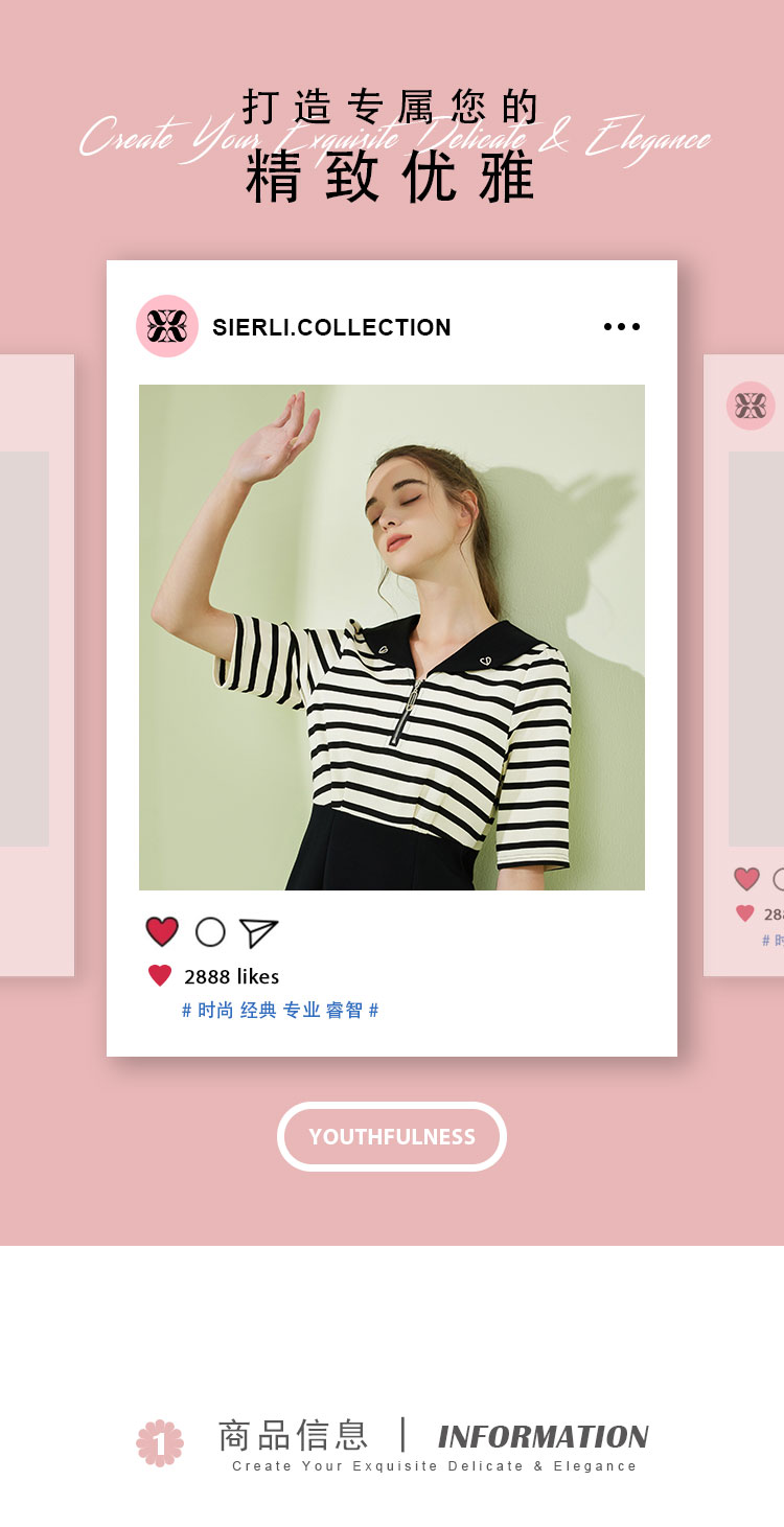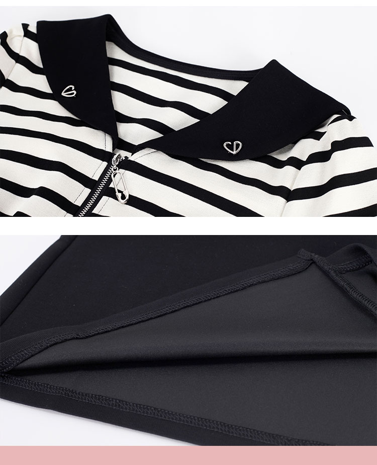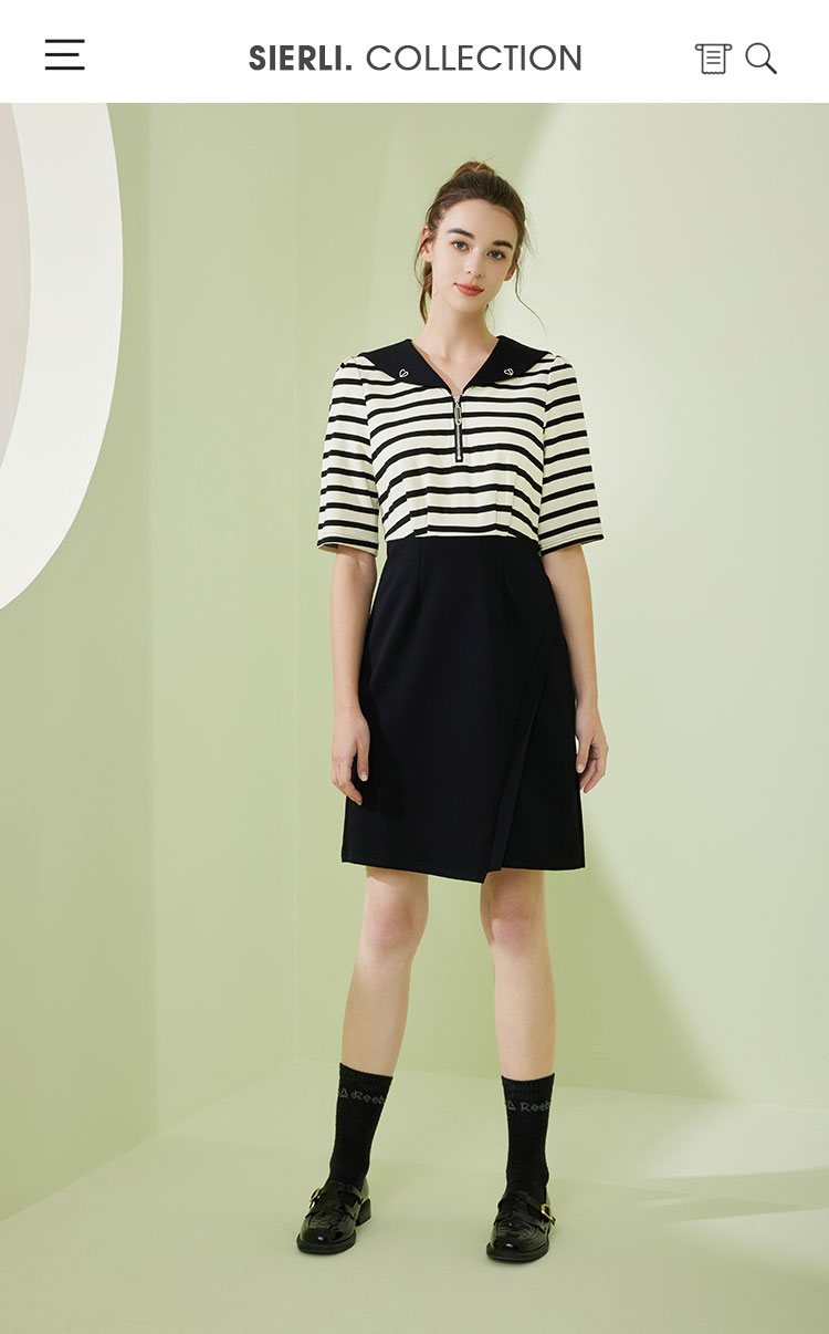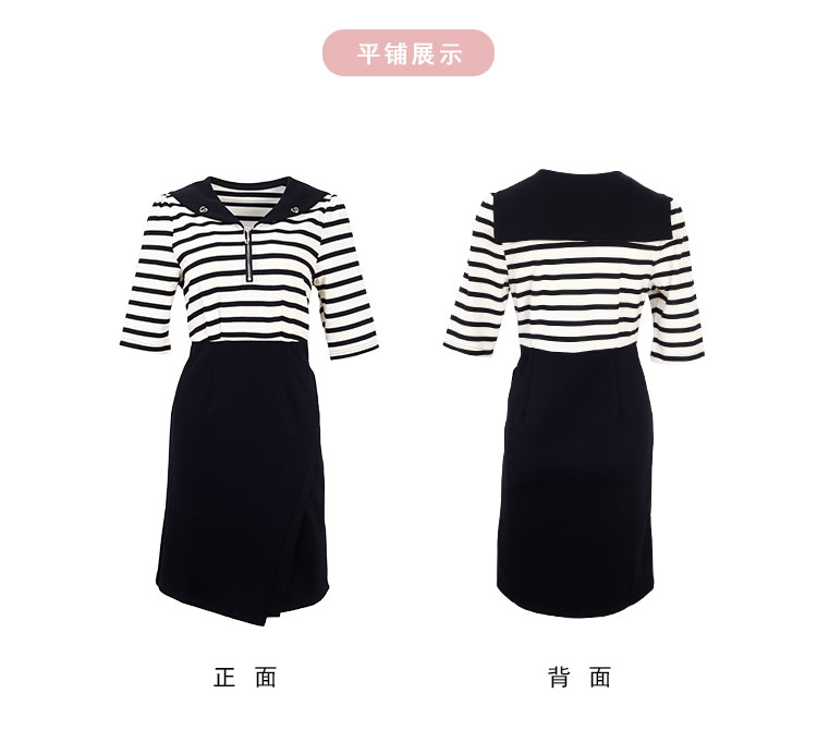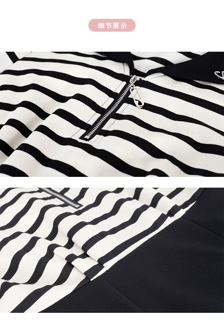 NF8W6斯尔丽瑟俪2023春季新款翻领拼接式条纹减龄通勤连衣裙