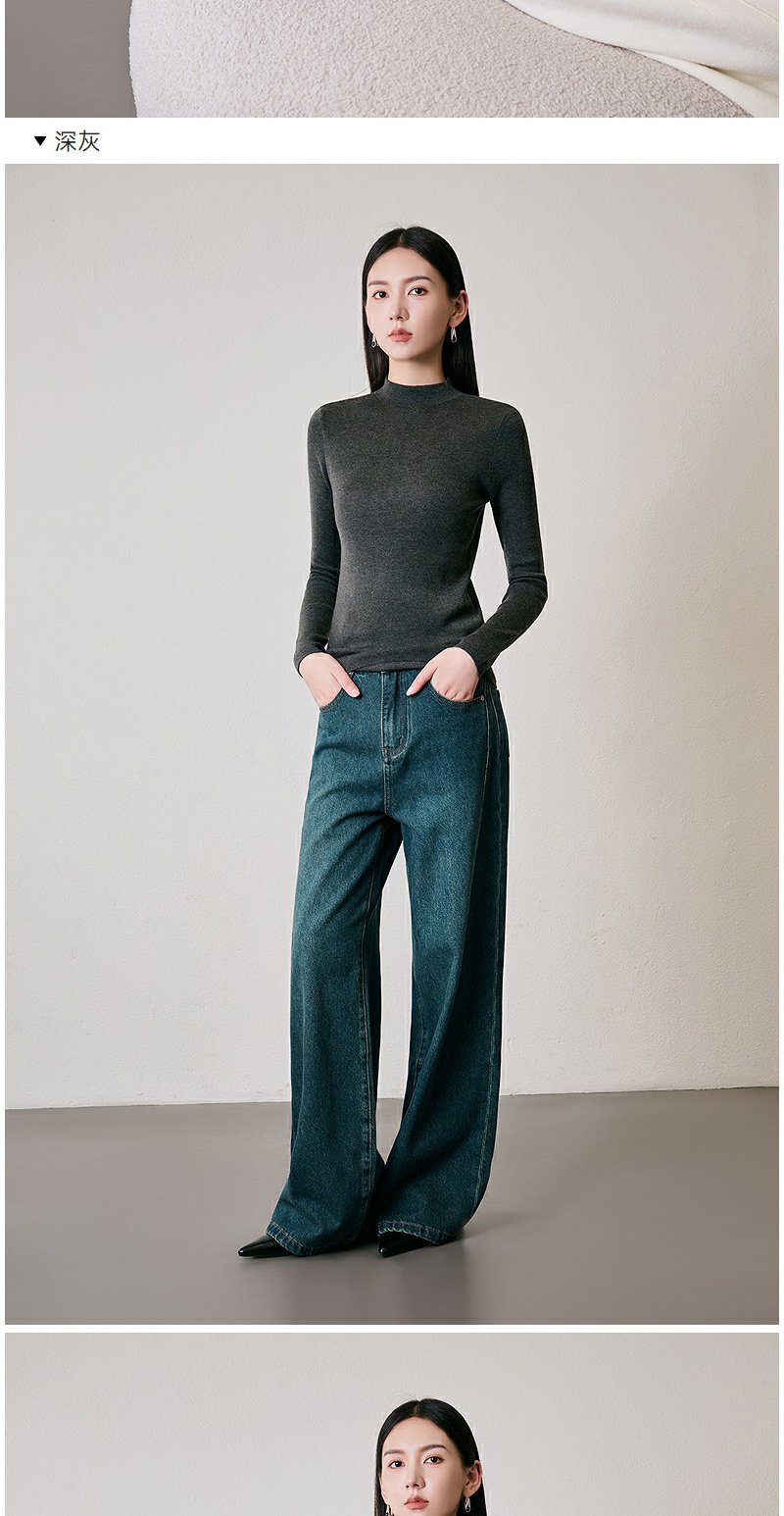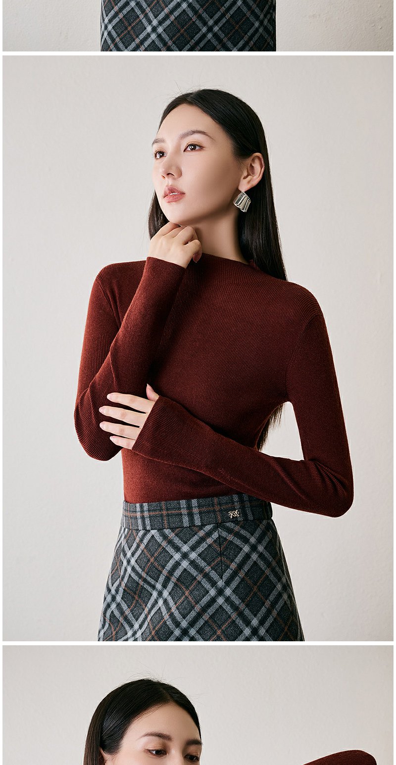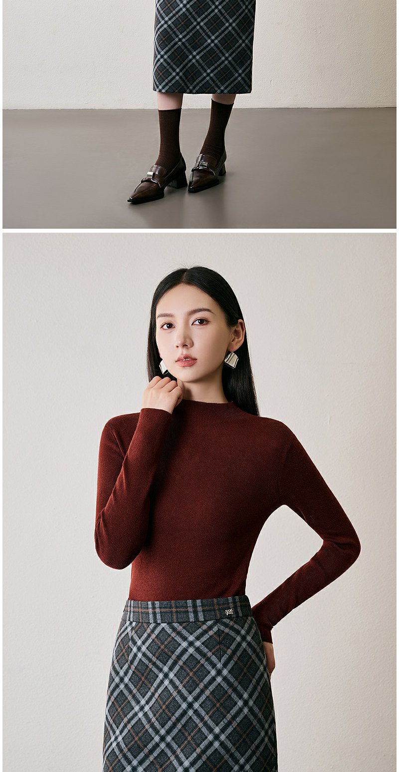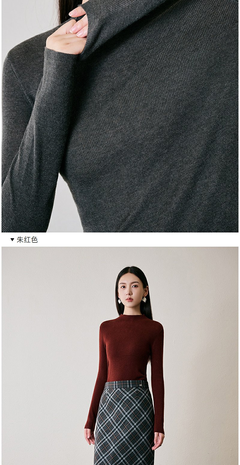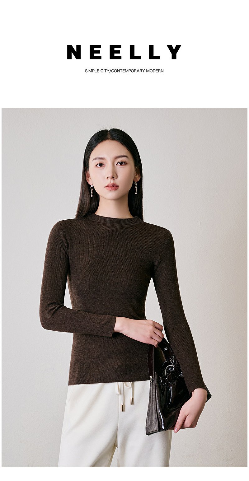 NEELLY纳俪商场同款冬季新款绵羊毛套头圆领针织衫气质通勤毛衣女N24104A06616