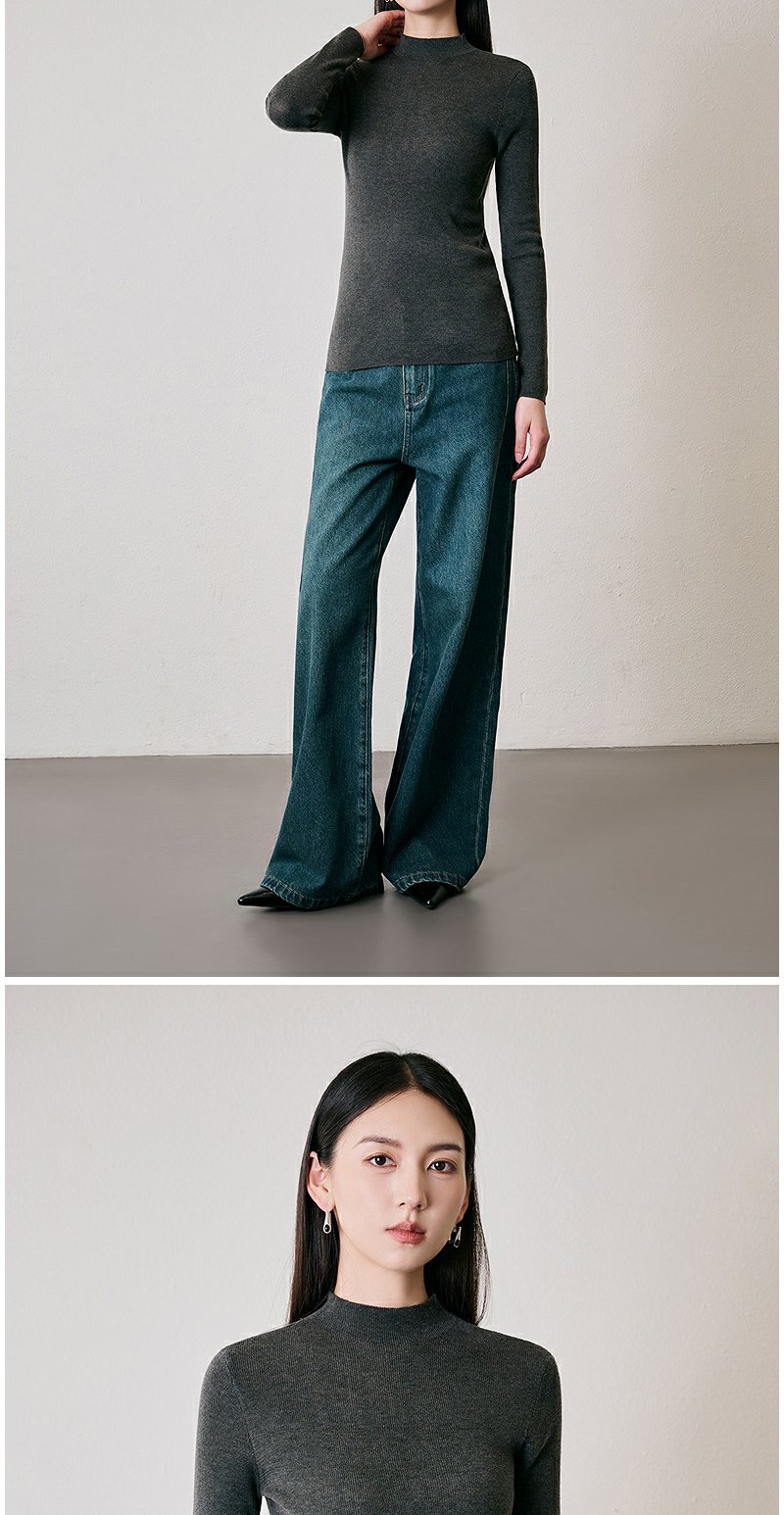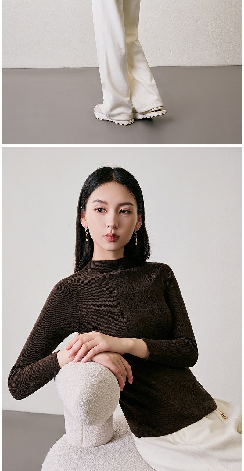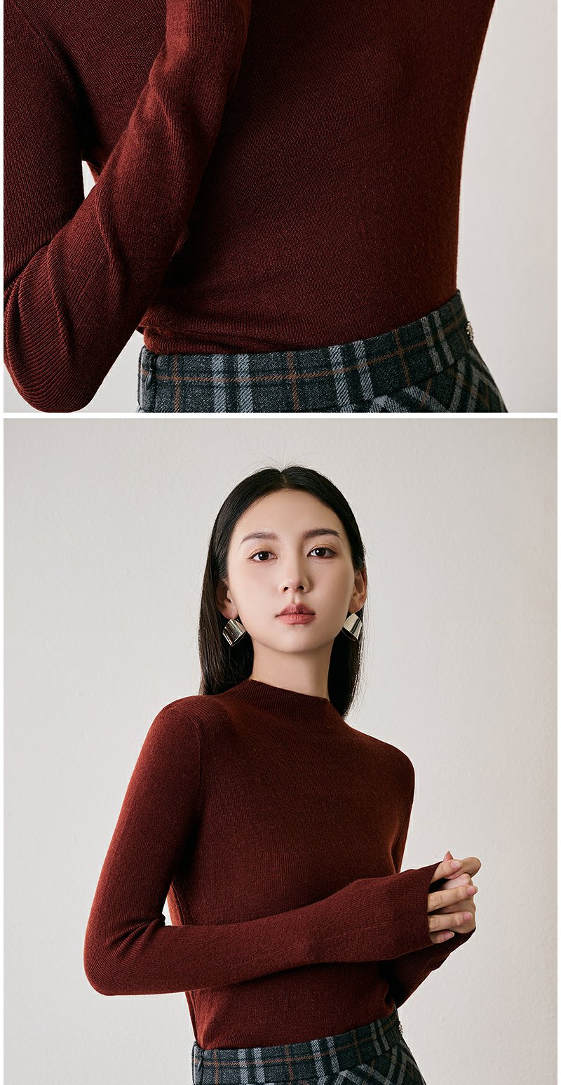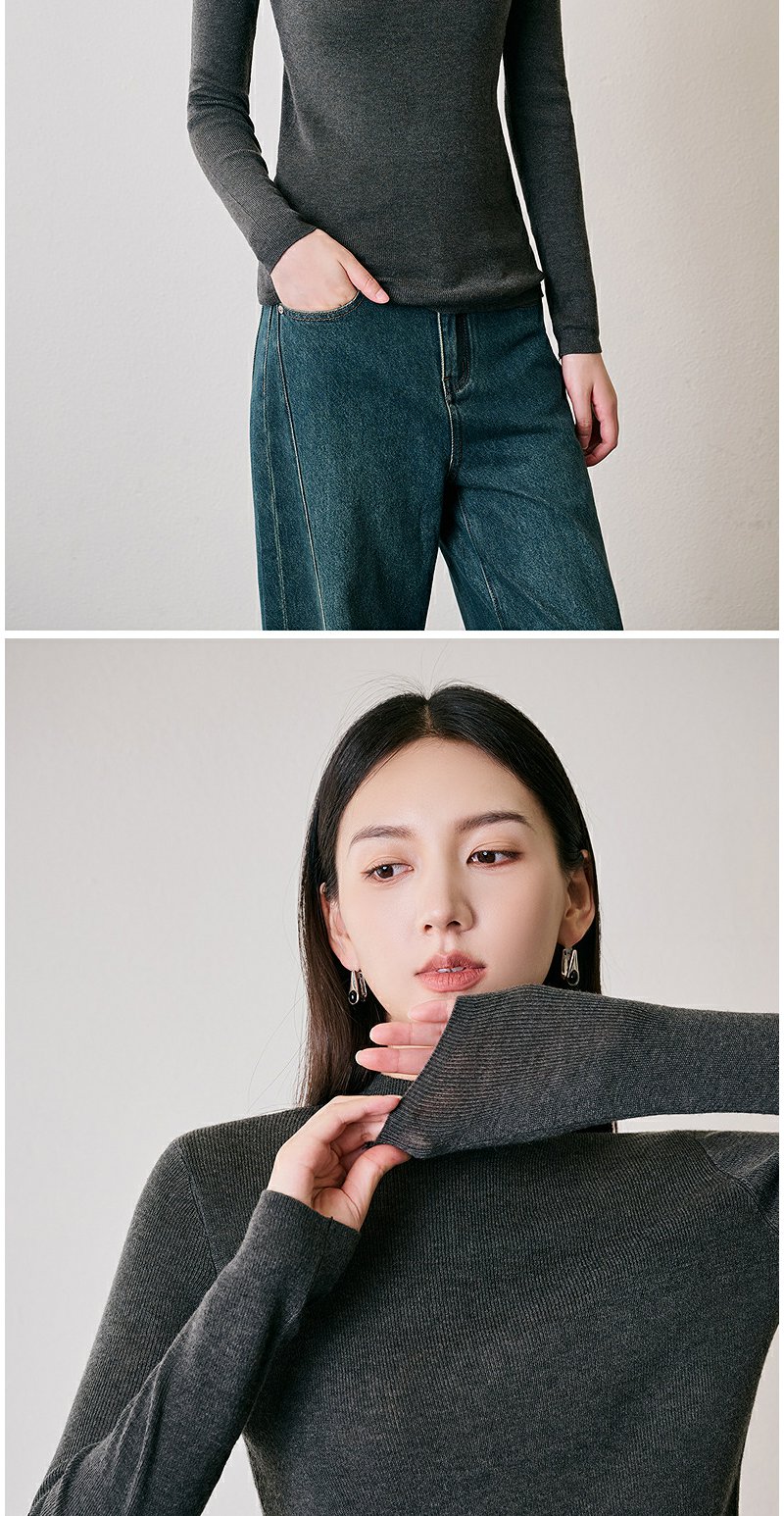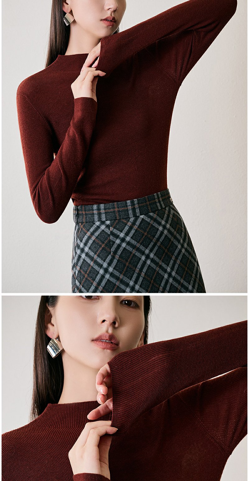 NEELLY纳俪商场同款冬季新款绵羊毛套头圆领针织衫气质通勤毛衣女N24104A06616