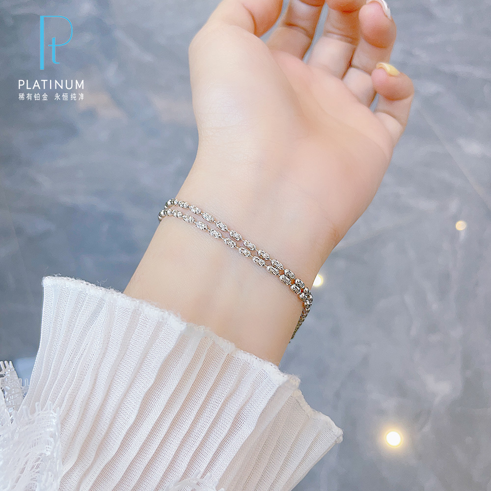 【限时8.8折】【线上铂金馆】PT950 【国际铂金协会】铂金实心钻石链双排调节手链(内里线为铂金链)(BSL00274)预售产品下单后不退款不退货不换货不补差价)