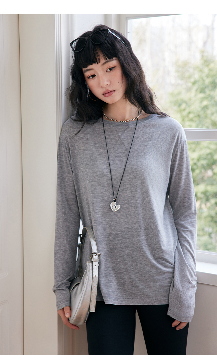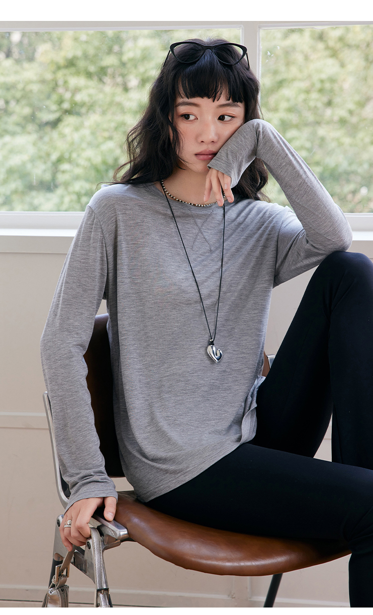 心选丨【2025春季新品】天丝醋酸羊毛打底衫 轻盈内搭圆领罩衫微透 莱赛尔长袖T恤女 商品图2