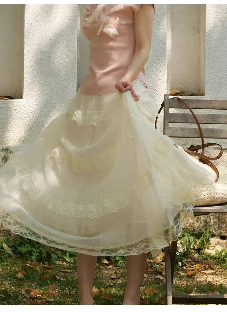 【门店同款】ENJOY夏季蕾丝褶皱蛋糕裙 162343727