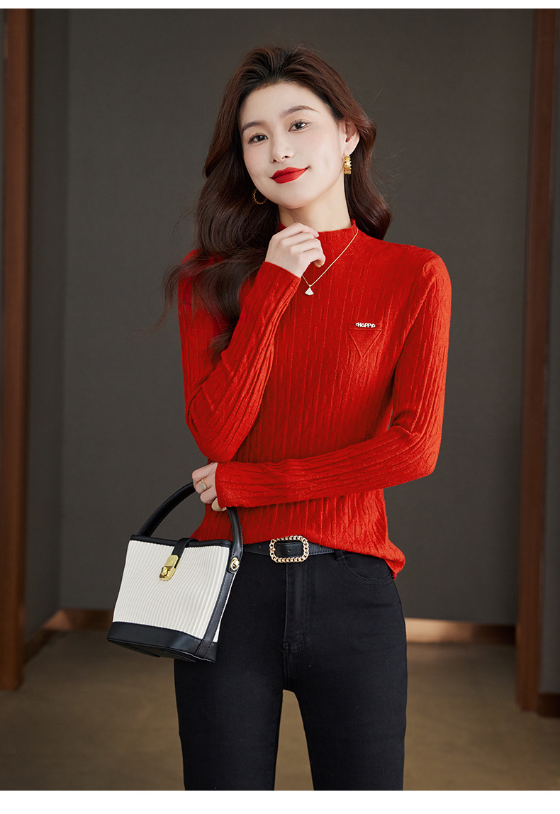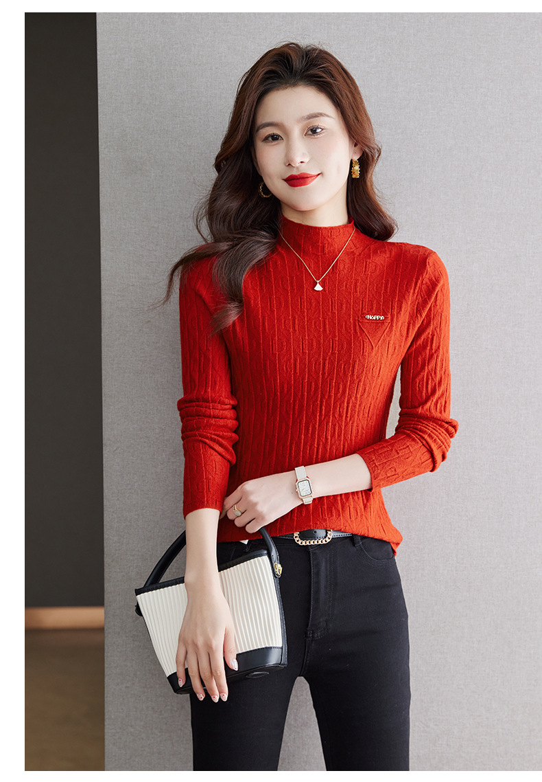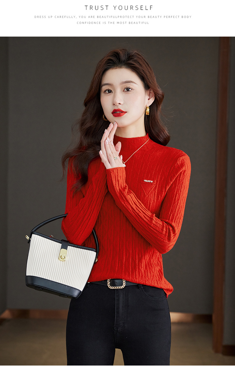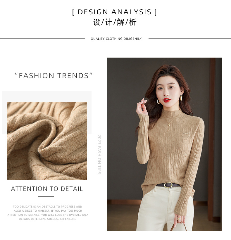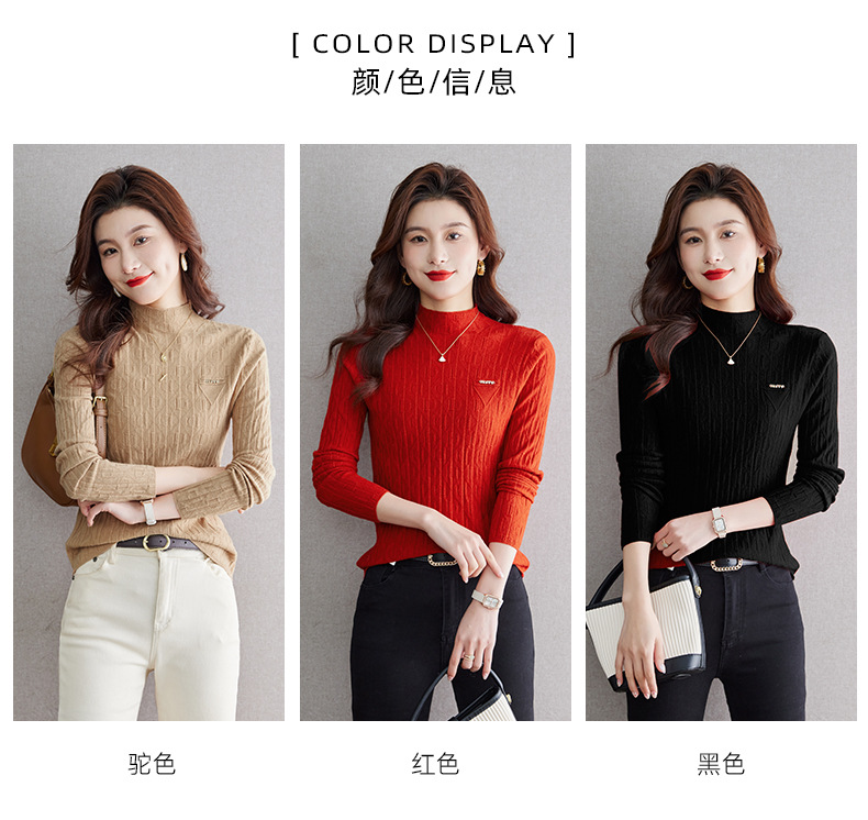 半高领年轻针织打底衫女秋冬慵懒风修身毛衣内搭好看短款上衣CC-QL-W8375
