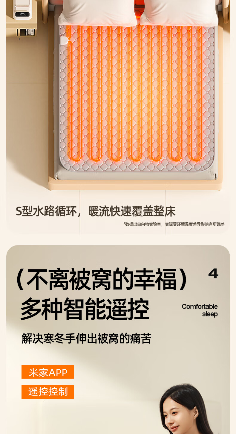 向物(SOTHING)智能双人水暖毯 水循环水暖电热毯 单控恒温水热毯床垫低噪24新款 米家智能