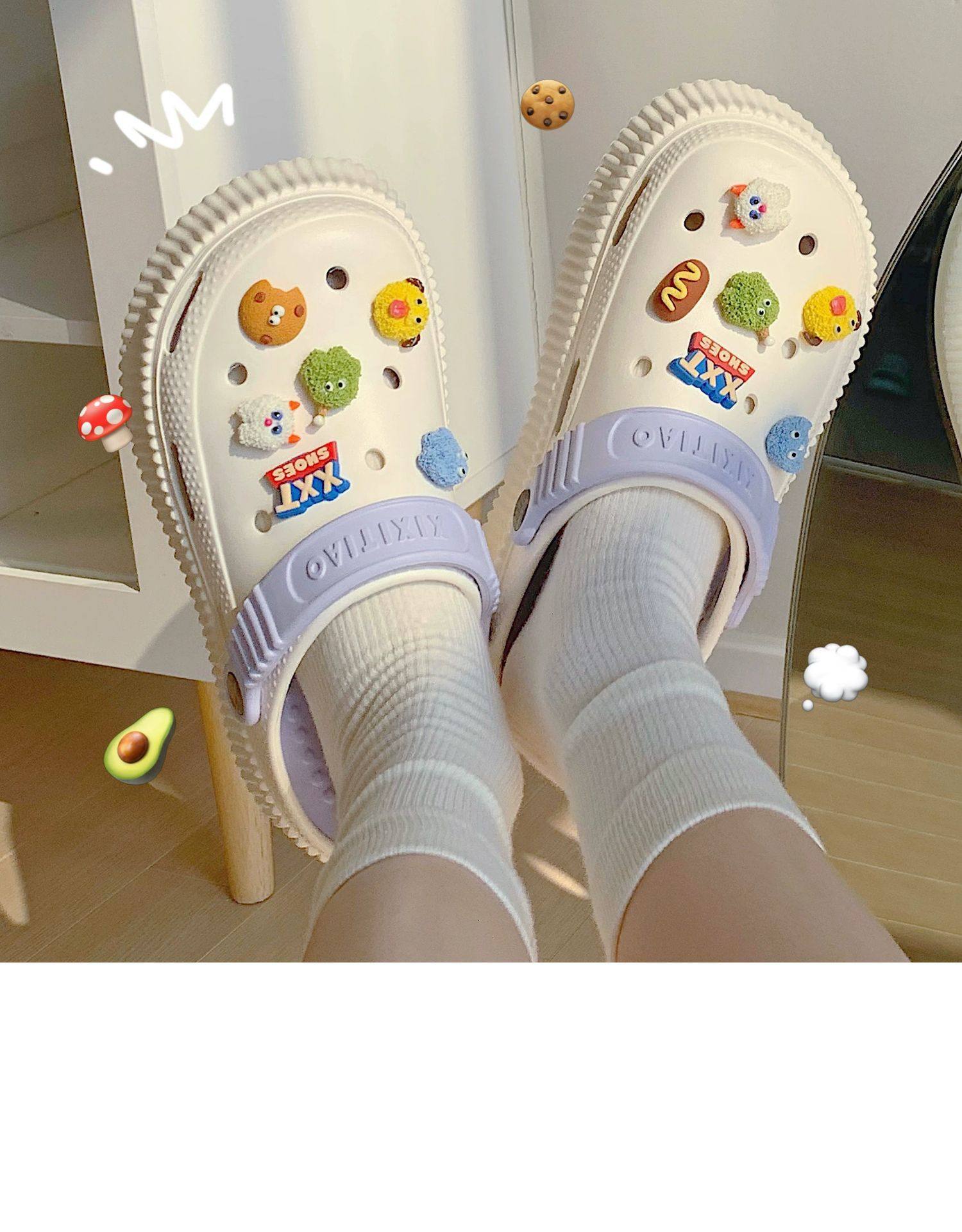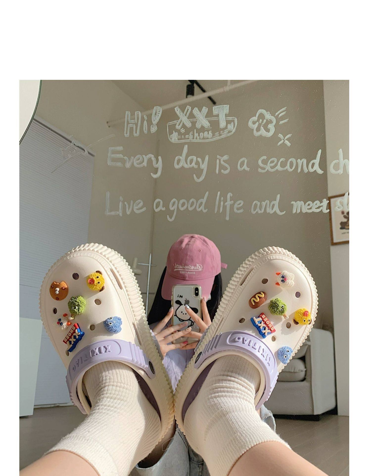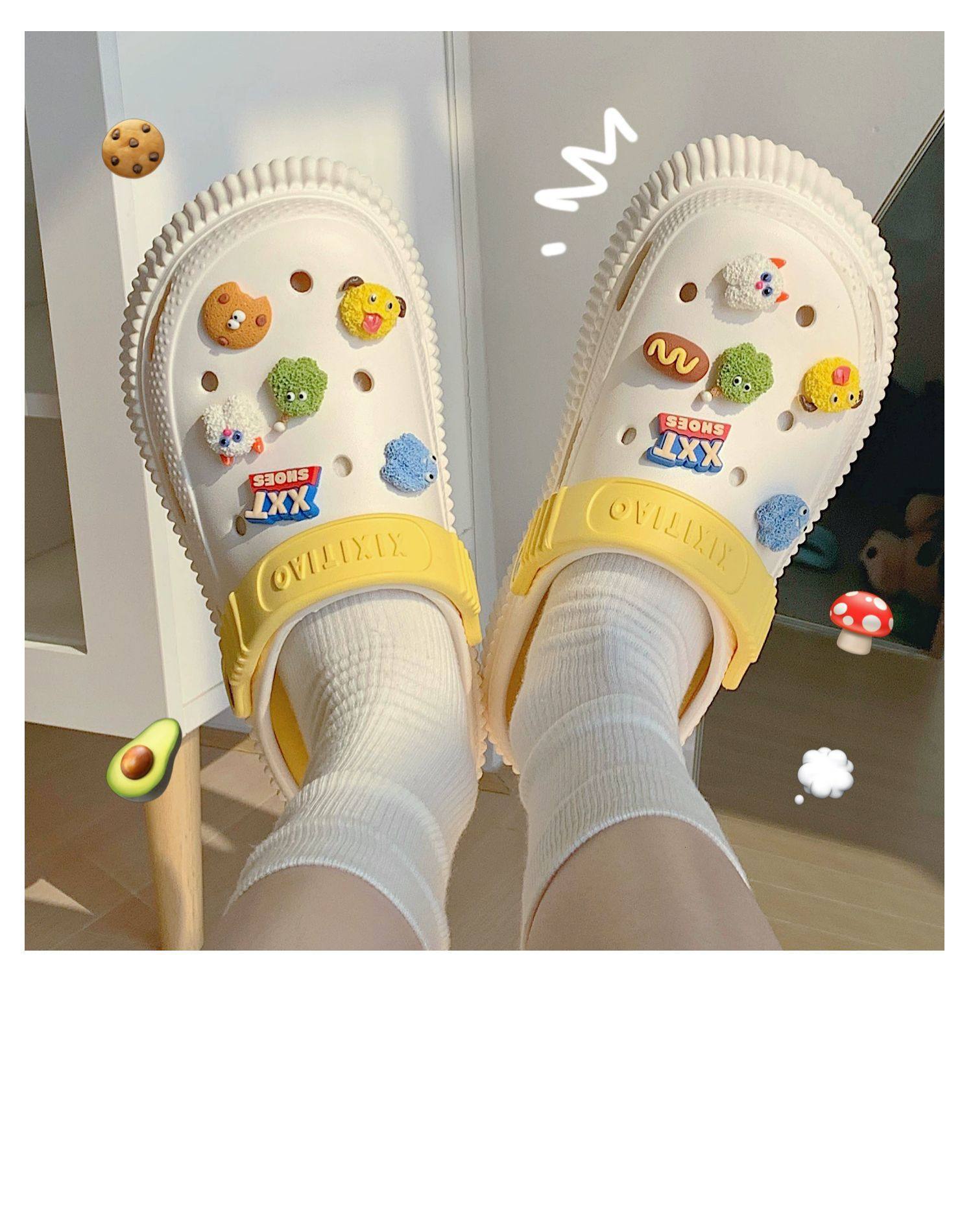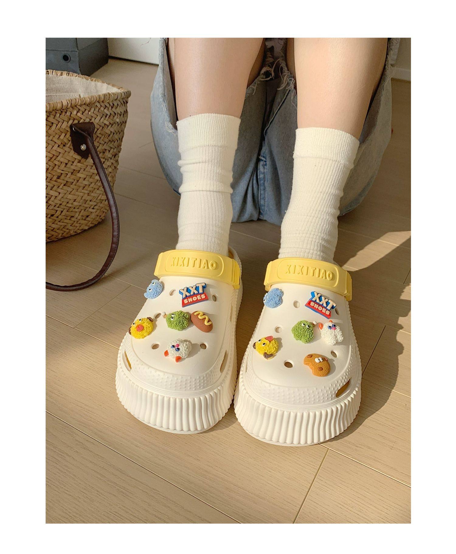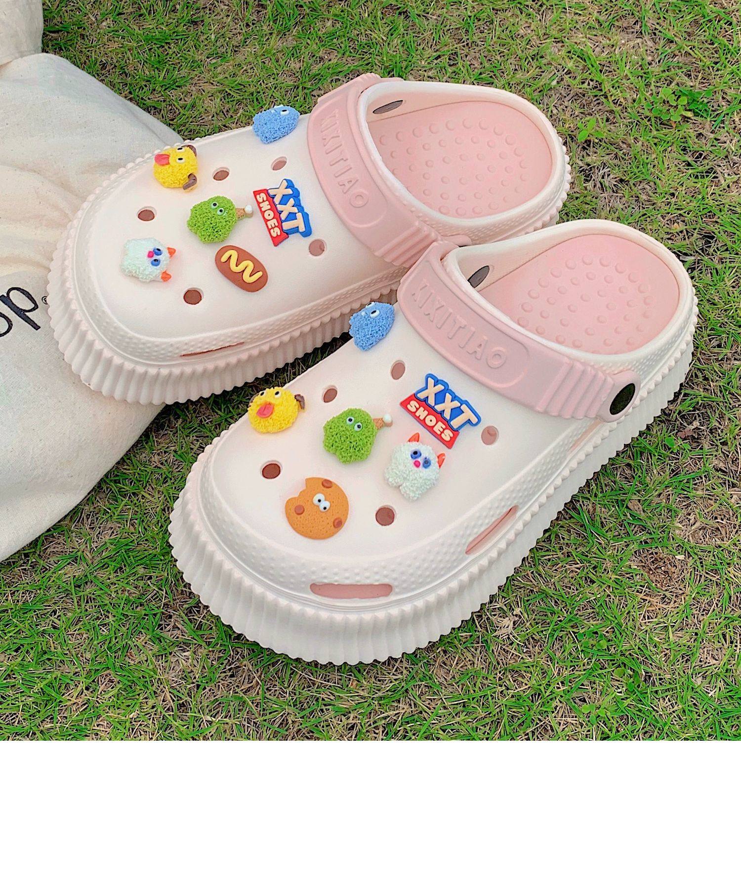 【DIY小怪兽花扣,一鞋两穿,凉鞋or拖鞋~~】时尚立体卡通软底包头洞洞鞋 厚底增高户外女士 夏季海边沙滩凉鞋拖鞋-QQ