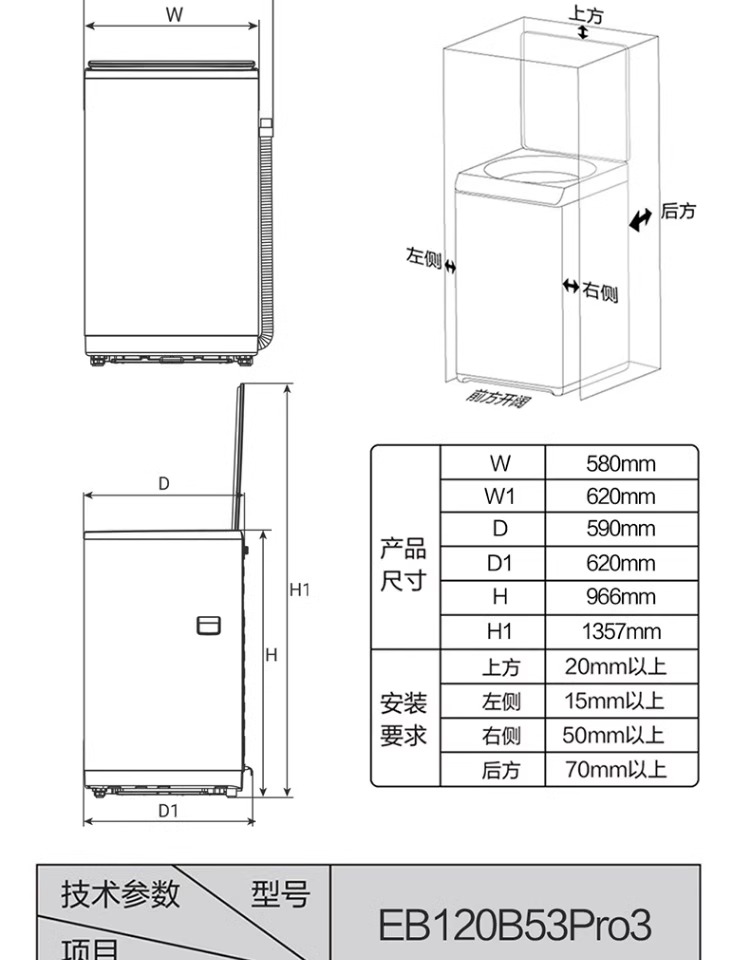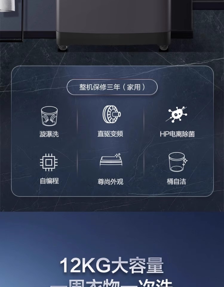 【直驱变频】海尔波轮洗衣机家用全自动12kg超大容量除菌EB120B53Pro3