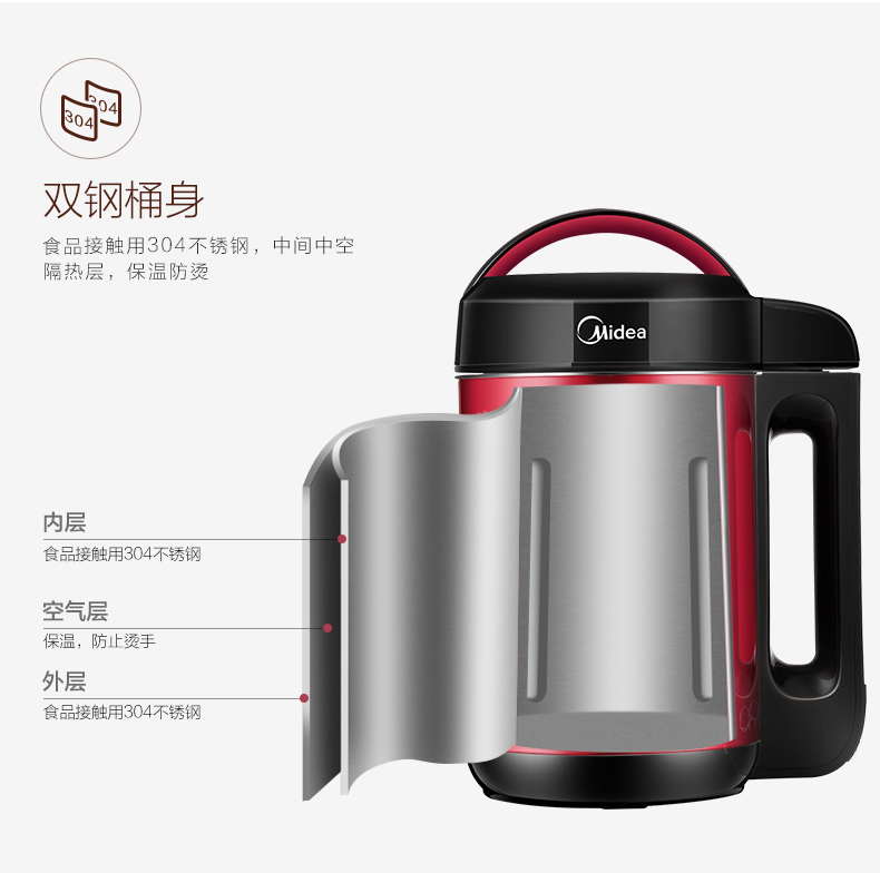 价格【会员价:195元】京选 美的(Midea ) 豆浆机家用双层不锈钢多功能豆汁机易清洗DJ12B-DEG1(DE12G13)