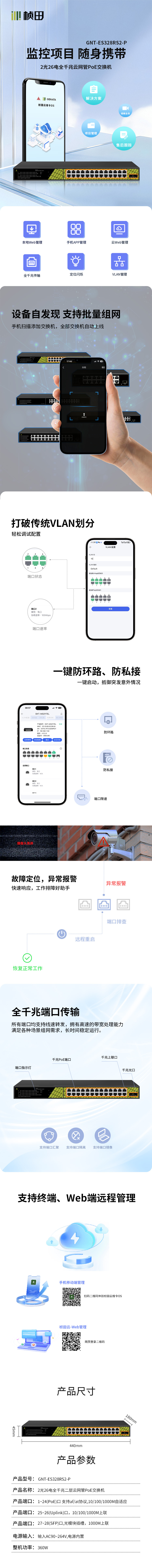2光26电全千兆二层云网管POE交换机(2C+2G+24GP/360W)- GNT-ES328RS2-P