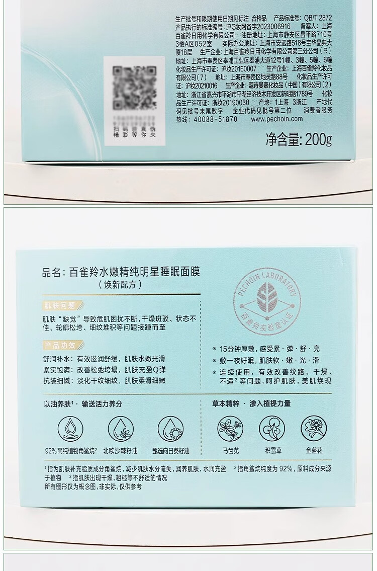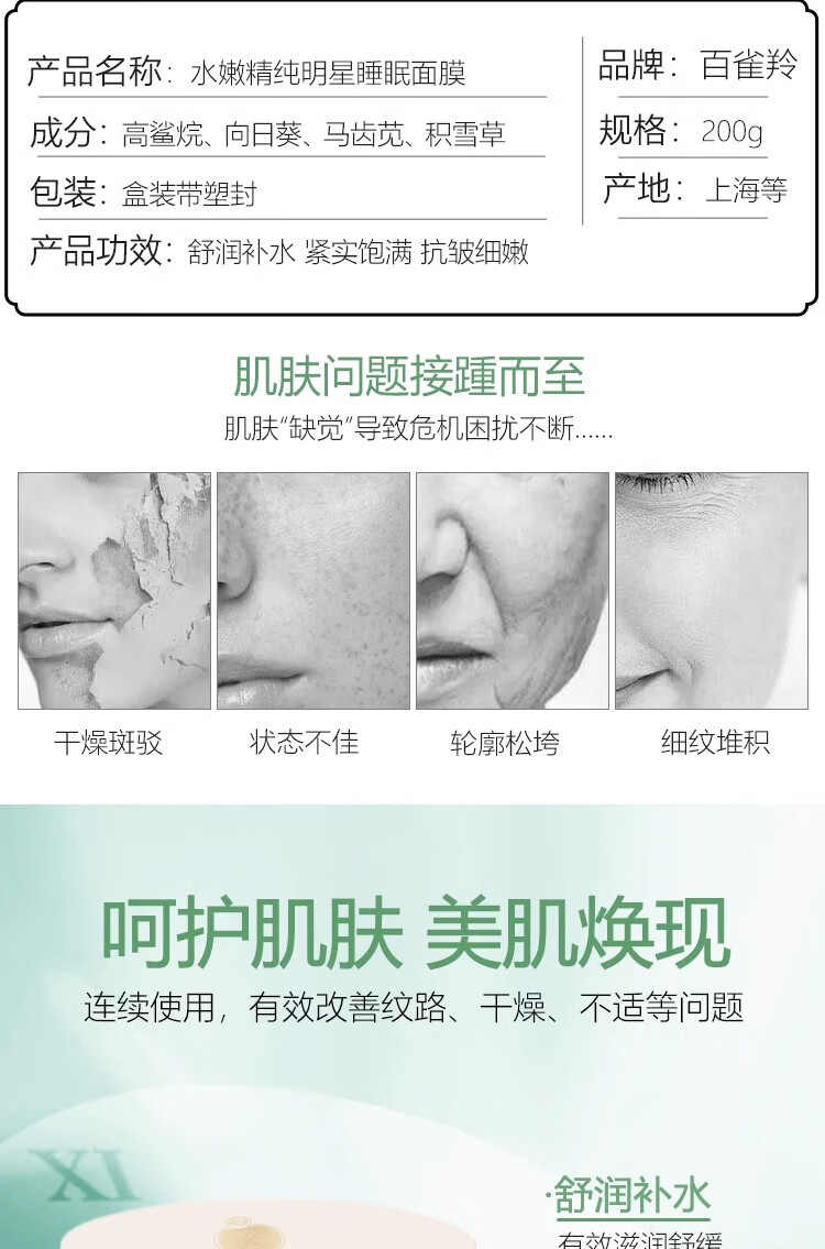 百雀羚水嫩精纯明星睡眠面膜(免洗型)200g 原价158元
