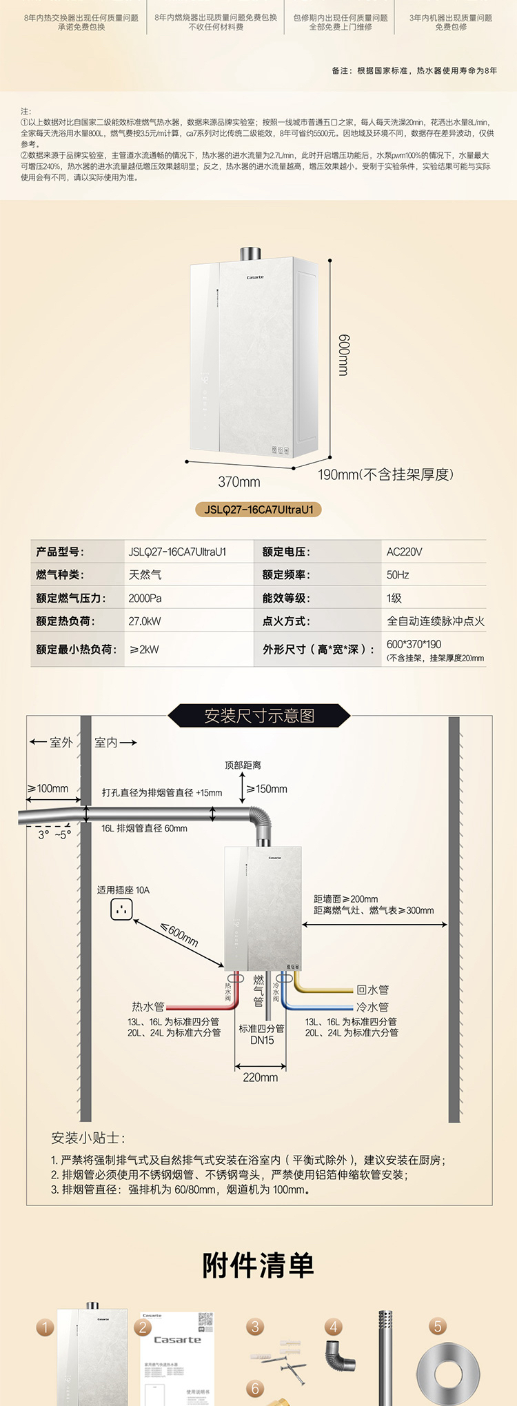 卡萨帝(Casarte)热水器 JSLQ27-16CA7UltraU1