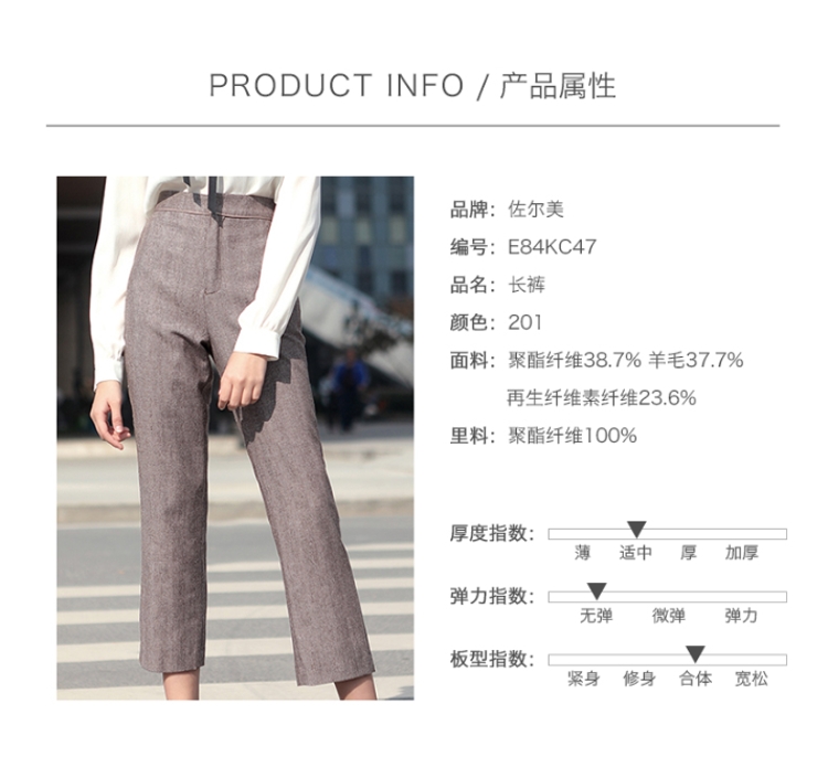 佐尔美新品冬季新品纯色修身显瘦气质商务休闲女士长裤E84KC47