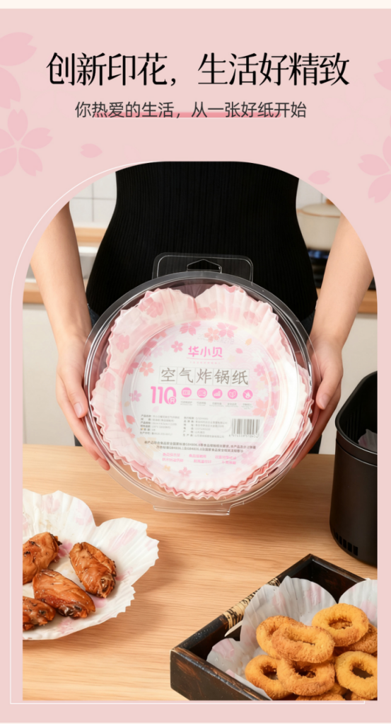以前总觉得,厨房用品只要实用就好,直到遇见华小贝樱花空气炸锅纸才明白: 生活的幸福感,就藏在这些小细节里。 不用再为洗锅烦恼,不用为安全焦虑 每次打开空气炸锅,看到那片粉白的樱花纸,连等待美食的时间都变得更愉悦。
