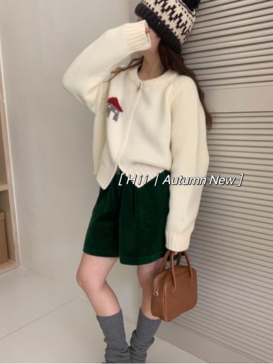 【岚可可小房子提花圆领拉链开衫】