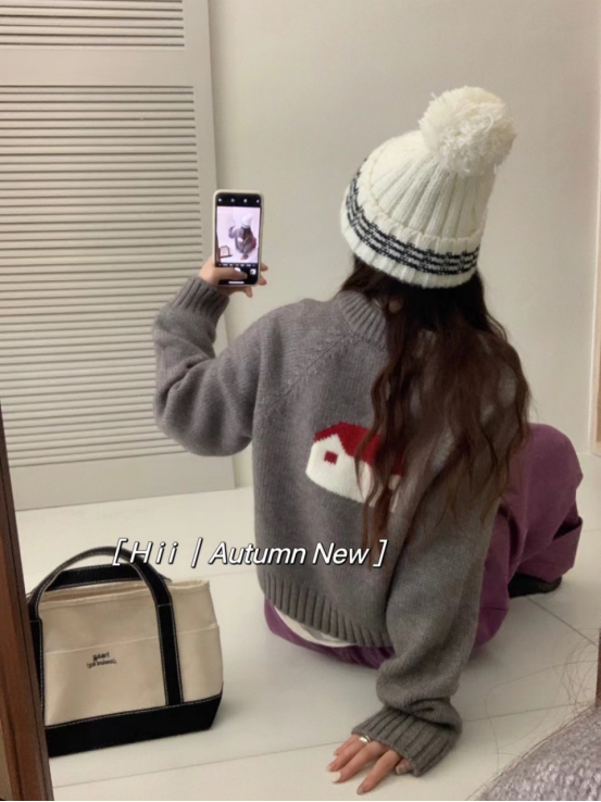 提花的小房子图案为这件开衫增添了童趣和艺术感 使其在众多服装中脱颖而出。