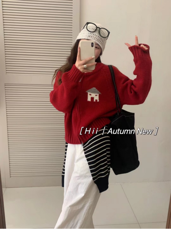 🍂🍂【岚可可小房子提花圆领拉链开衫】🌈它!来!啦!!! 💓💓穿过开衫的宝子们都知道,😎这个季节,🤩外套真是人手一件呐🍂!