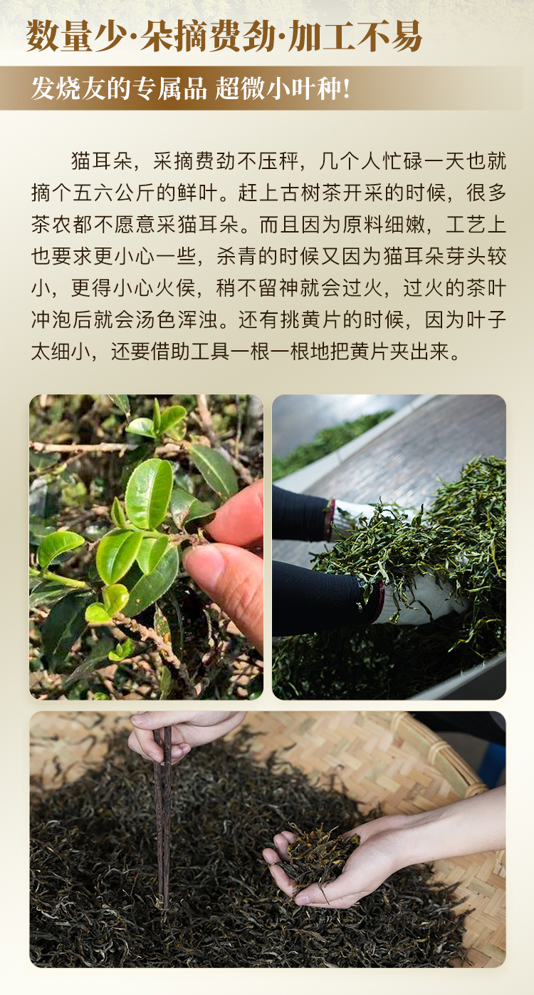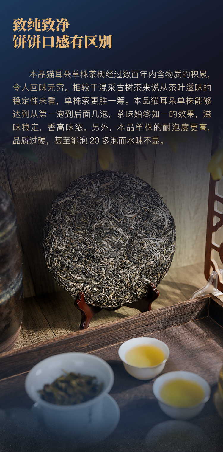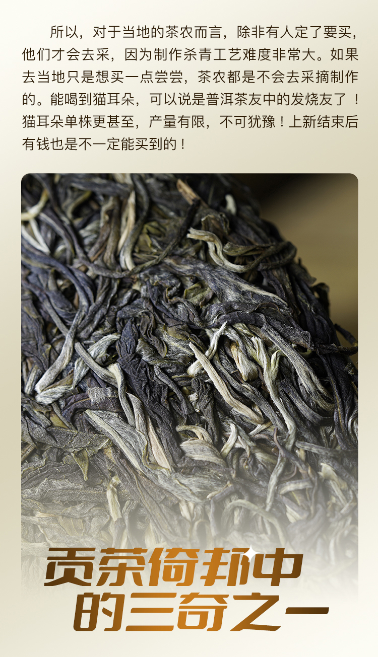 【猫耳朵单株】2024年头春头采 茶中精灵猫耳朵云南仅有0.01%的茶种 易武普洱茶生茶357g/饼 5饼/提 拍5发6拍20发25
