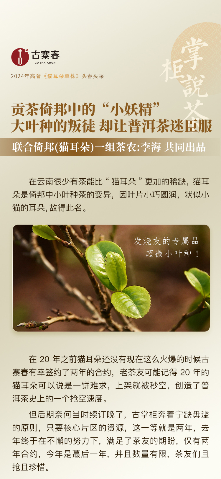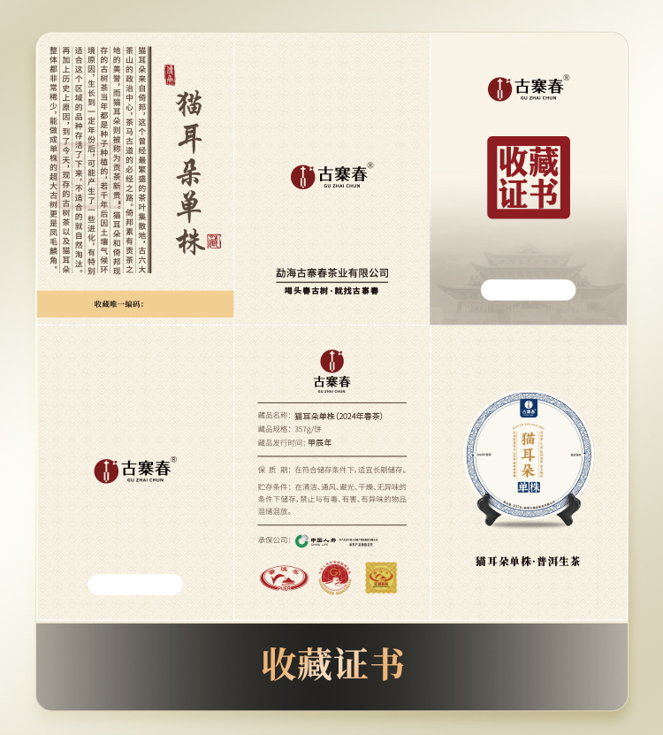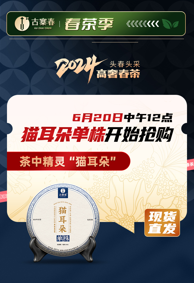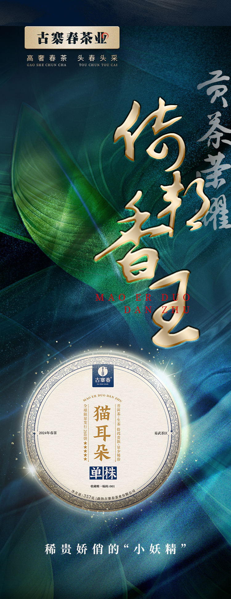 【猫耳朵单株】2024年头春头采 茶中精灵猫耳朵云南仅有0.01%的茶种 易武普洱茶生茶357g/饼 5饼/提 拍5发6拍20发25