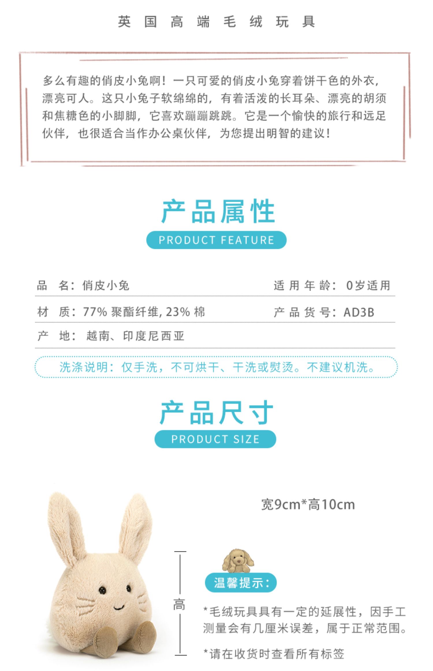 Jellycat Jellycat 俏皮小兔/小猫/高地牛/独角兽 10cm