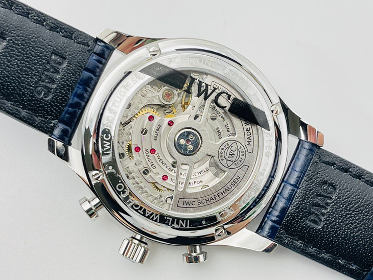 机芯是衡量一款复刻表品质的核心要素之一。ZF Factory 为这款葡计复刻表定制了 CAL.69355 机芯,这无疑是其技术实力的有力证明。该机芯能够无理由实现原装所有功能,无论是计时的精准启动与停止,还是小秒针的顺畅运行,都表现出色。从机芯的构造到装饰打磨,都尽可能地模仿了原版机芯的工艺与细节。精致的背透设计让这颗机芯得以完美展示,其细腻的日内瓦波纹打磨以及齿轮的精密运转,即使在专业眼光下审视,也颇具迷惑性,极大地提升了腕表的整体档次与复刻的还原程度。