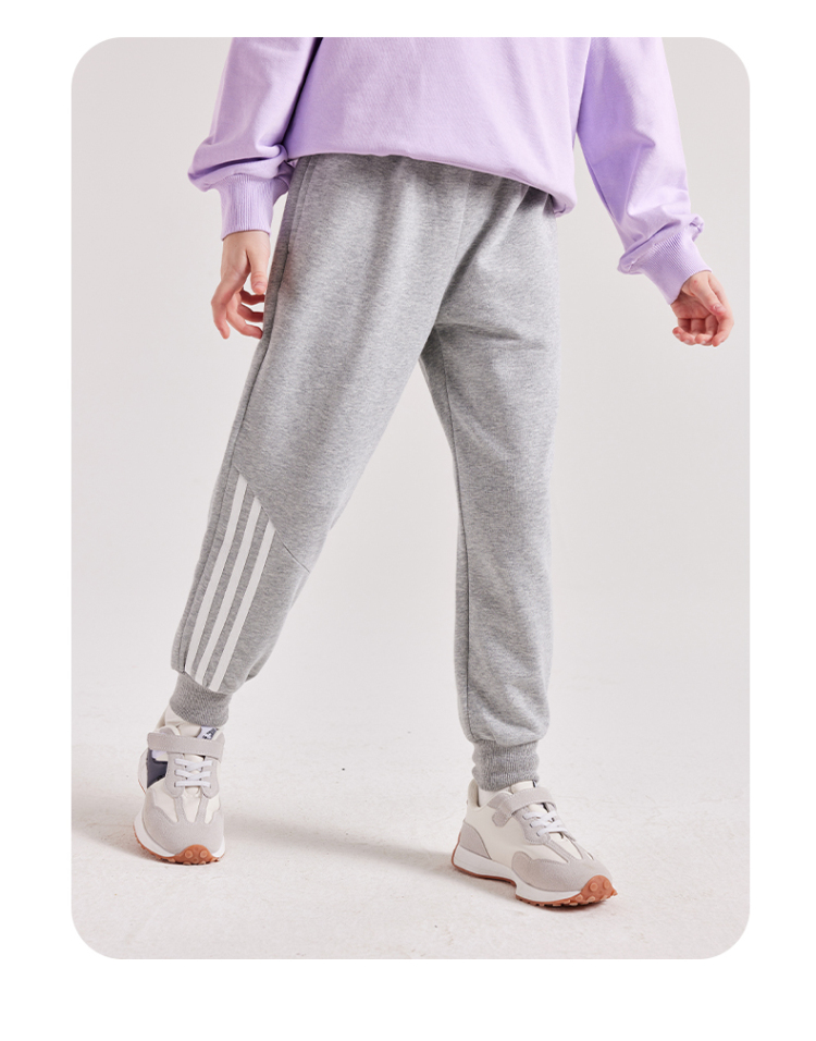 【抄底价清仓】龙之涵简约气质款女童直筒裤 9分裤 百搭有型 全棉水洗棉 女童麻感九分直筒裤