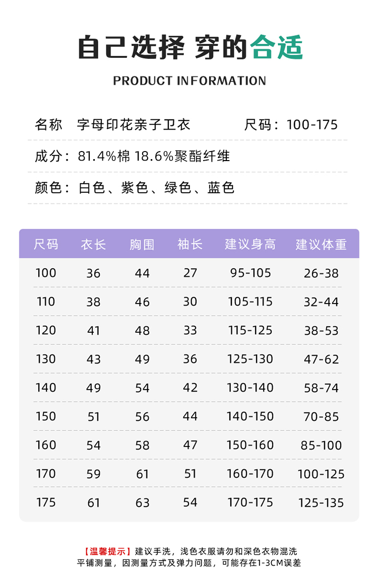 龙之涵 字母印花亲子卫衣 三条杠亲子运动裤 婴幼儿A类标准