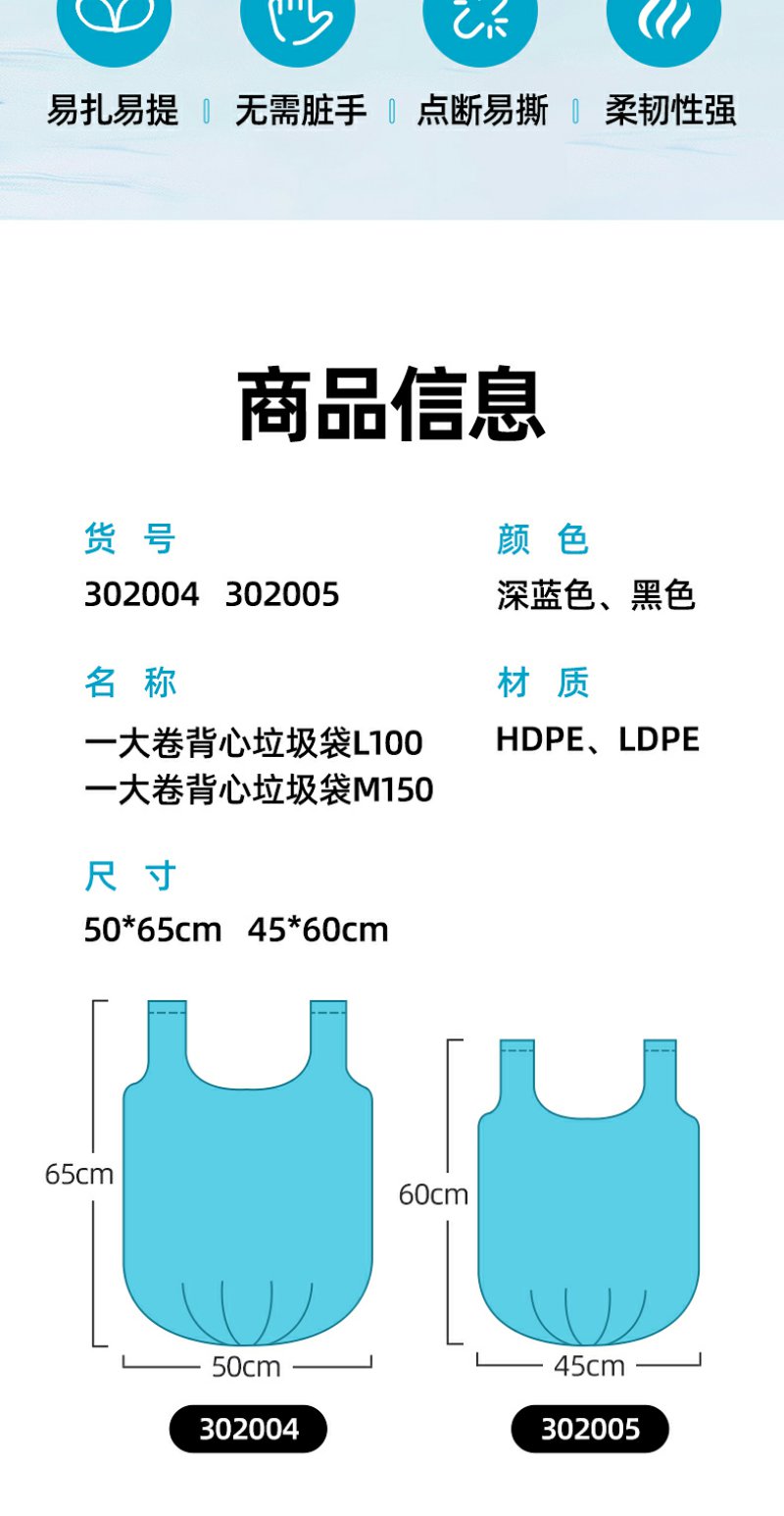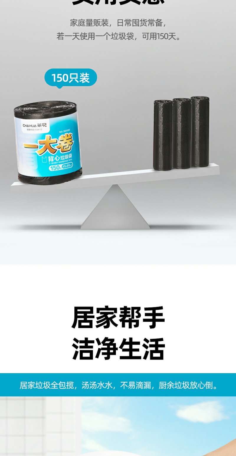 【茶花】一大卷背心款垃圾袋100只量贩装
