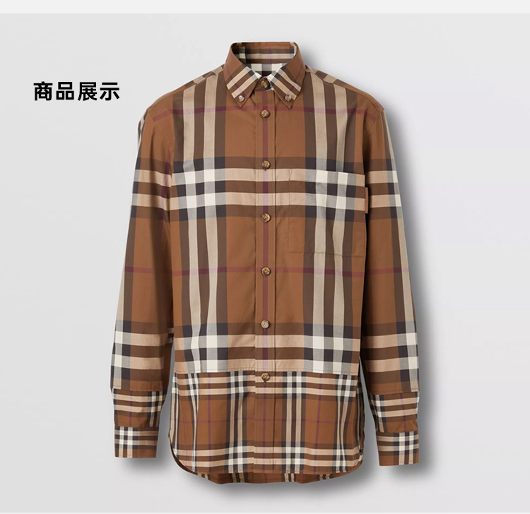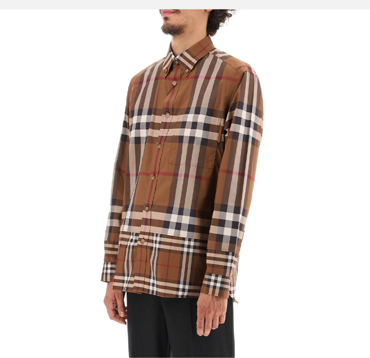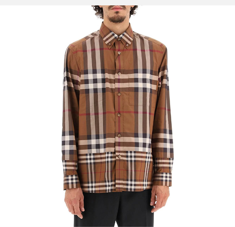 BURBERRY 巴宝莉 男士对比感格纹棉质长袖衬衫 格子 8058579 A9011